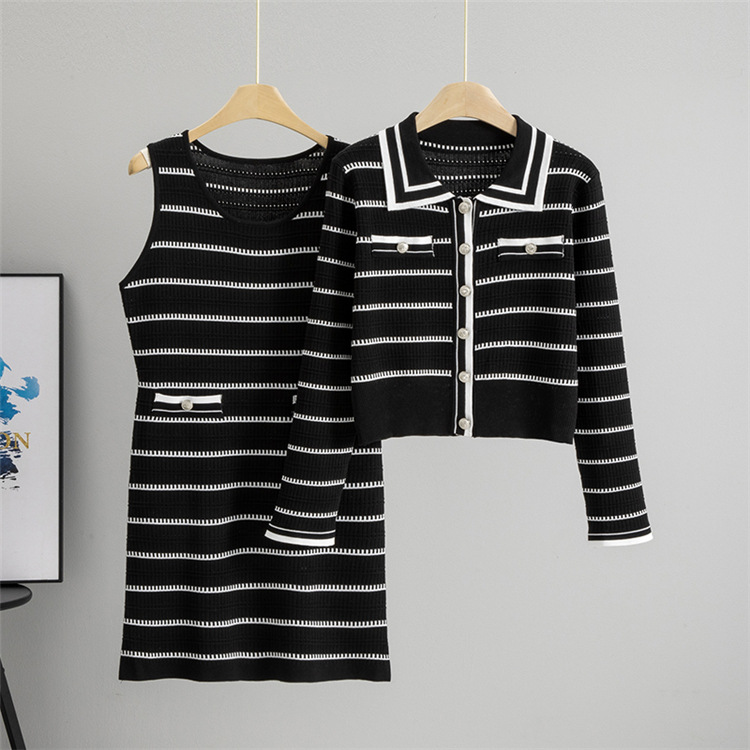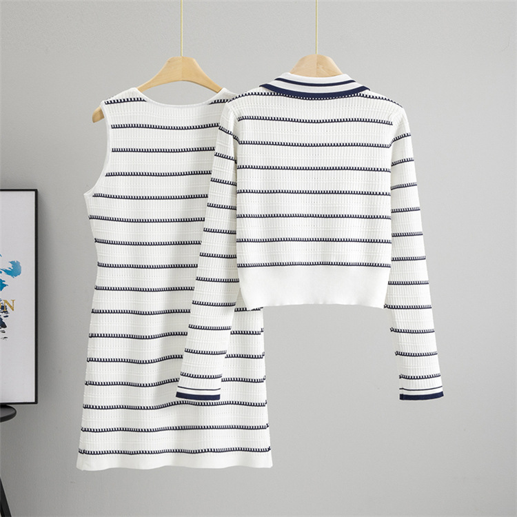 Knitted Dress Women Summer Lazy Casual Striped Cardigan Dress Two Piece Sets
