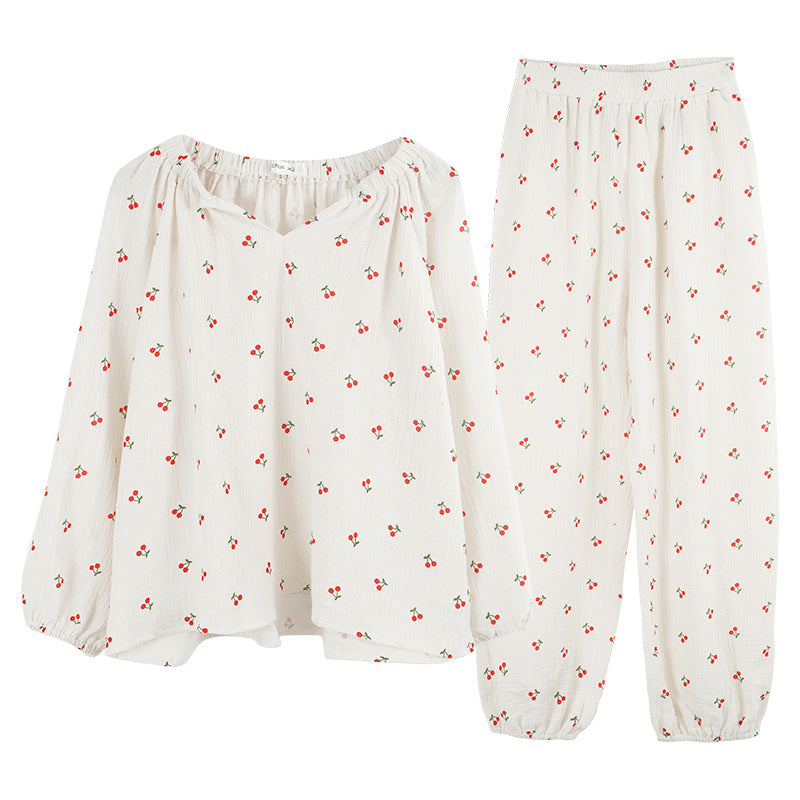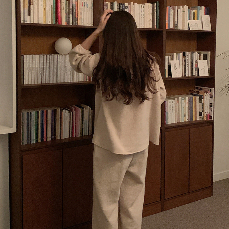 Korean Pure Cotton Gauze Pajamas Set Women Spring Autumn Minimalist Long Sleeve Home Wear Can Be Worn outside