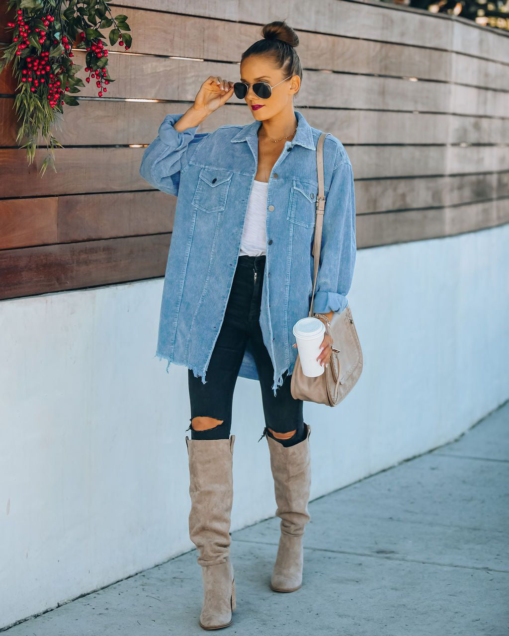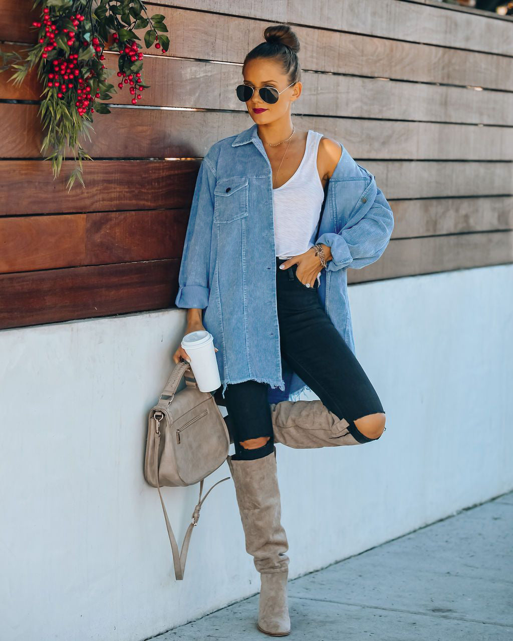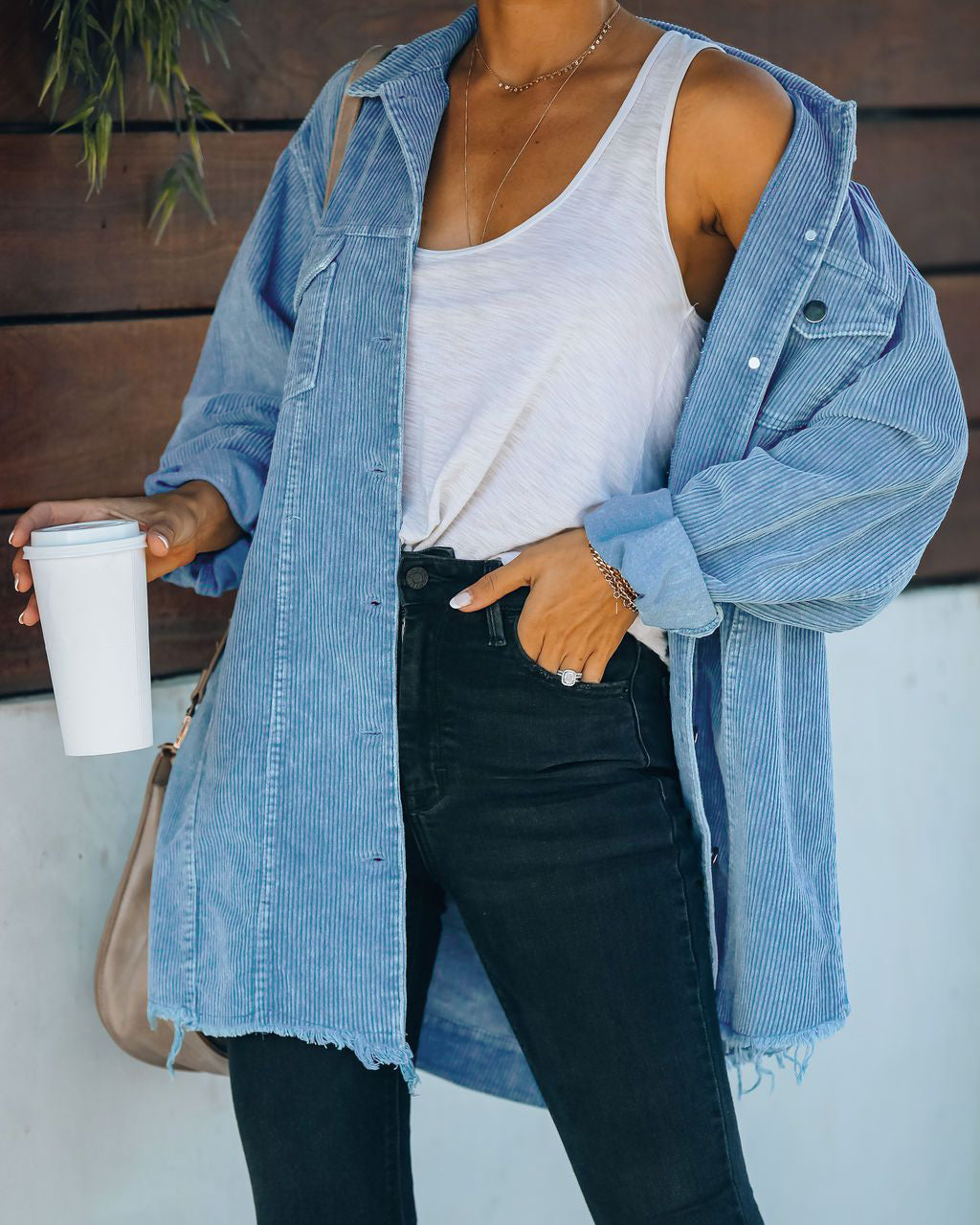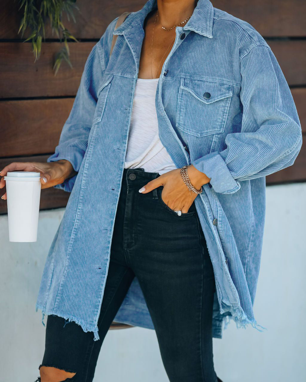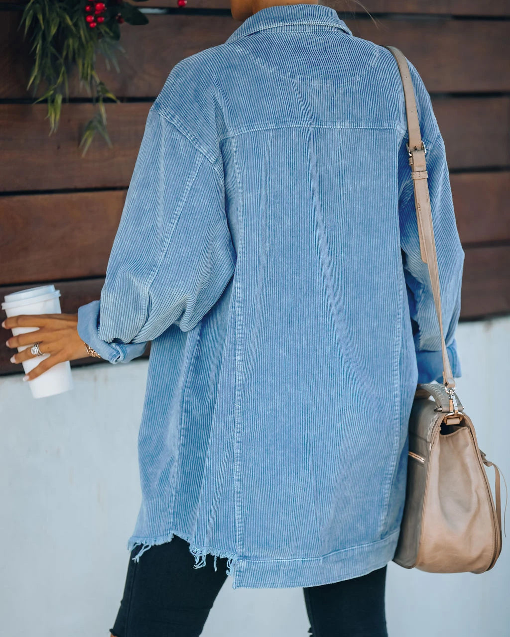 Ladies Oversized Shirt Washed Corduroy Cotton Thin Distressed Coat