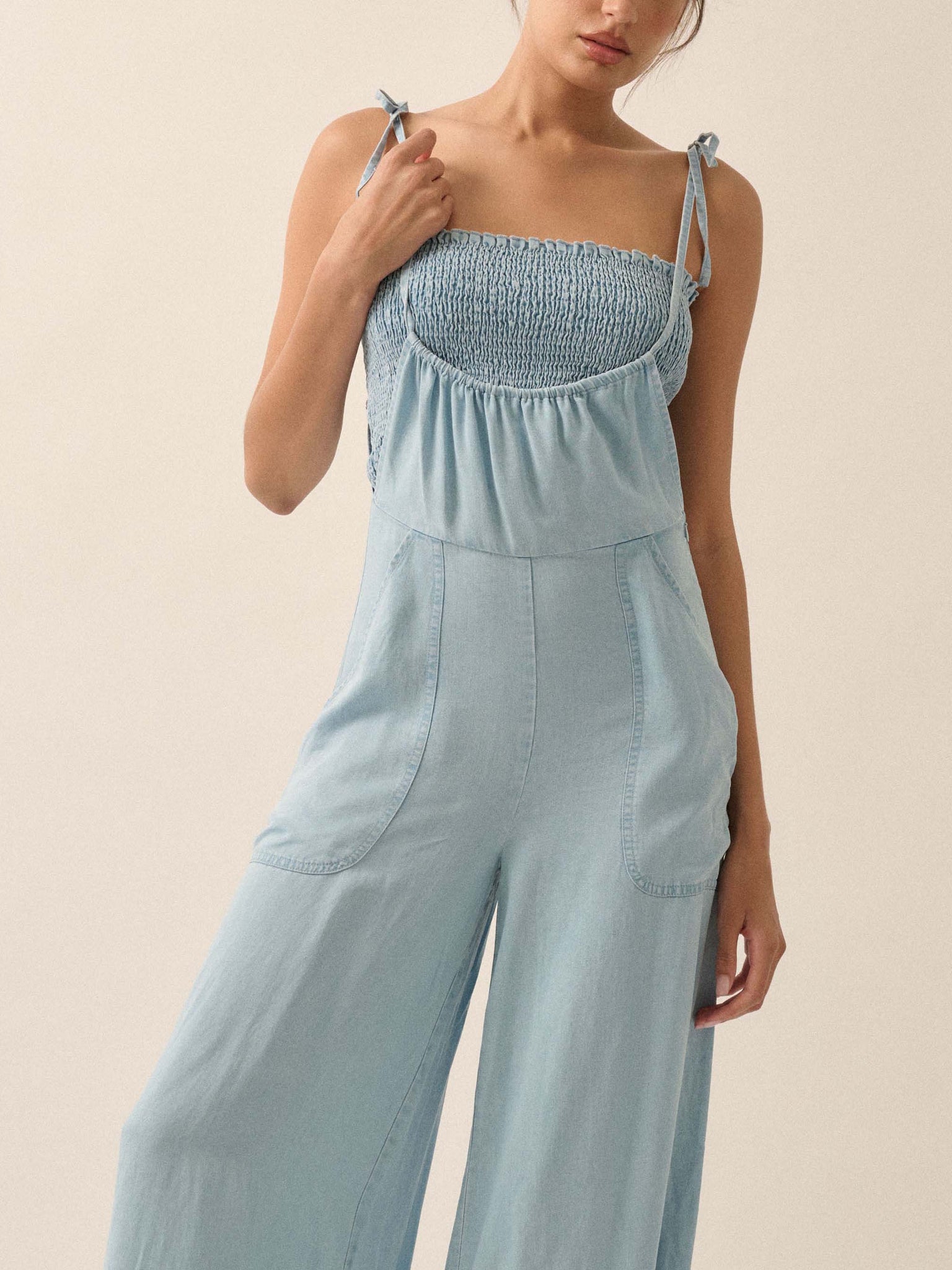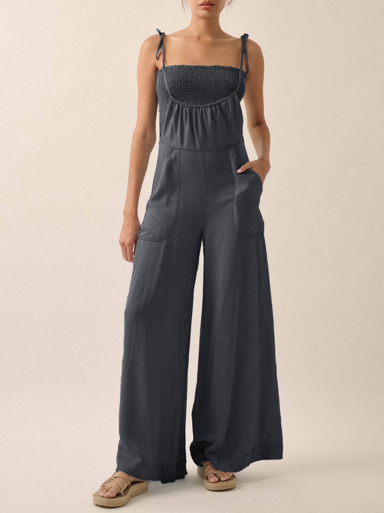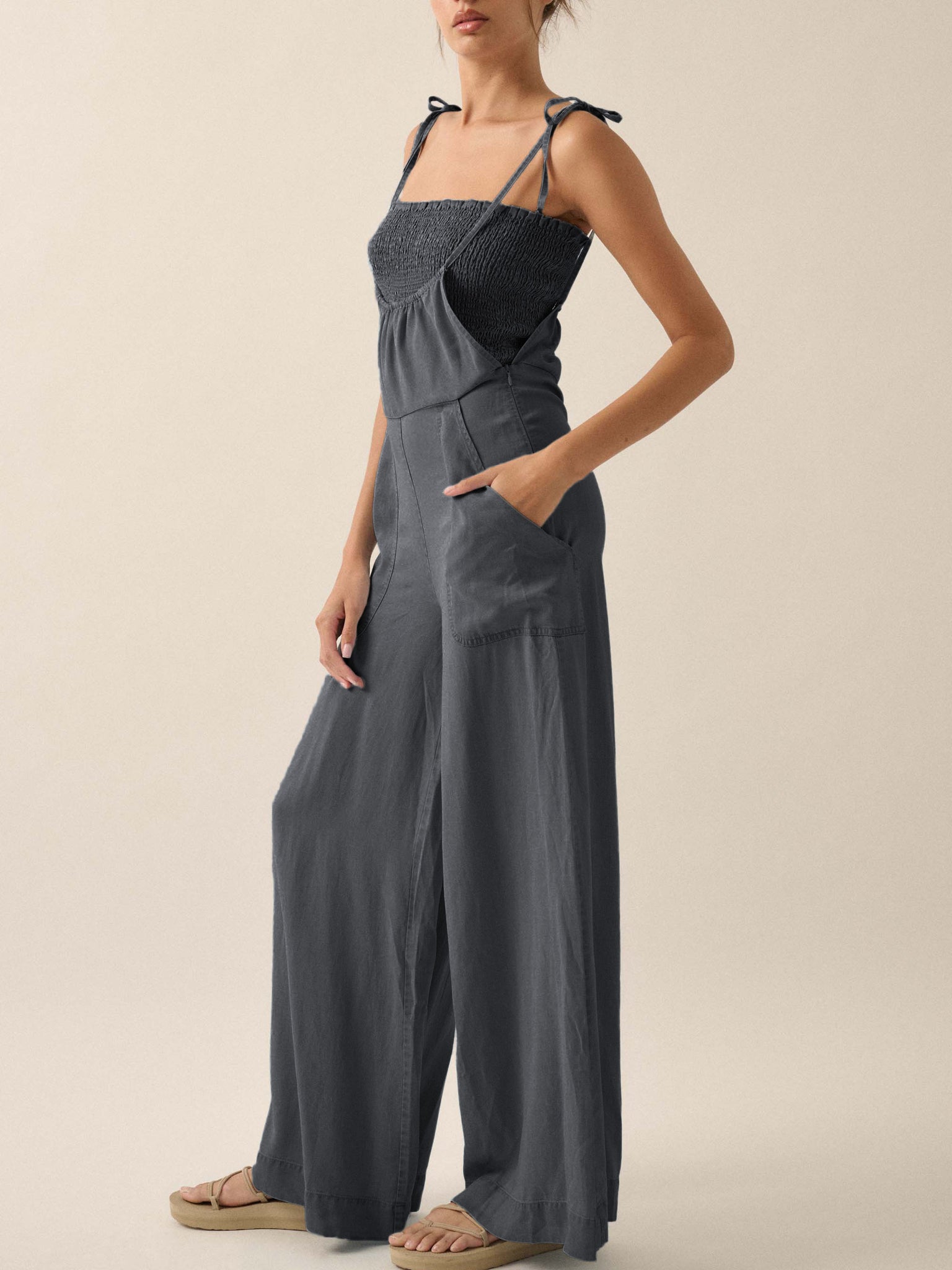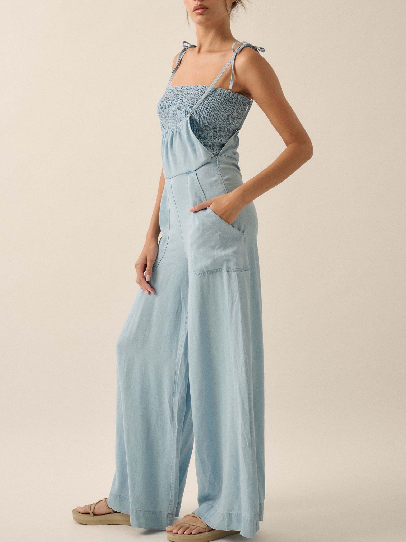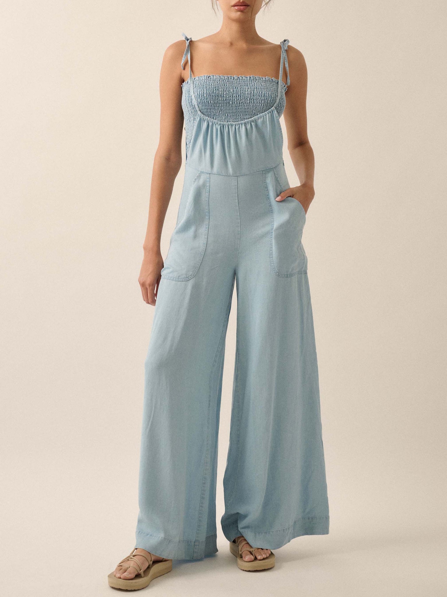Ladies Summer French Elegant Denim Wrapped Chest Strap Wide Two Piece Set Leg Jumpsuit