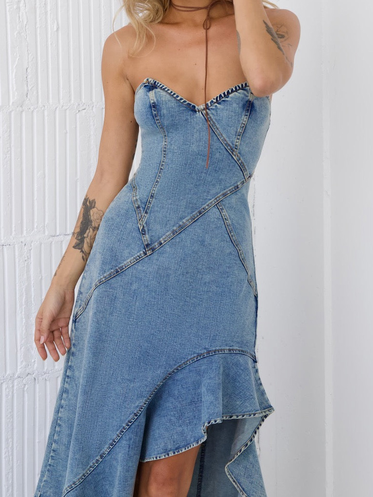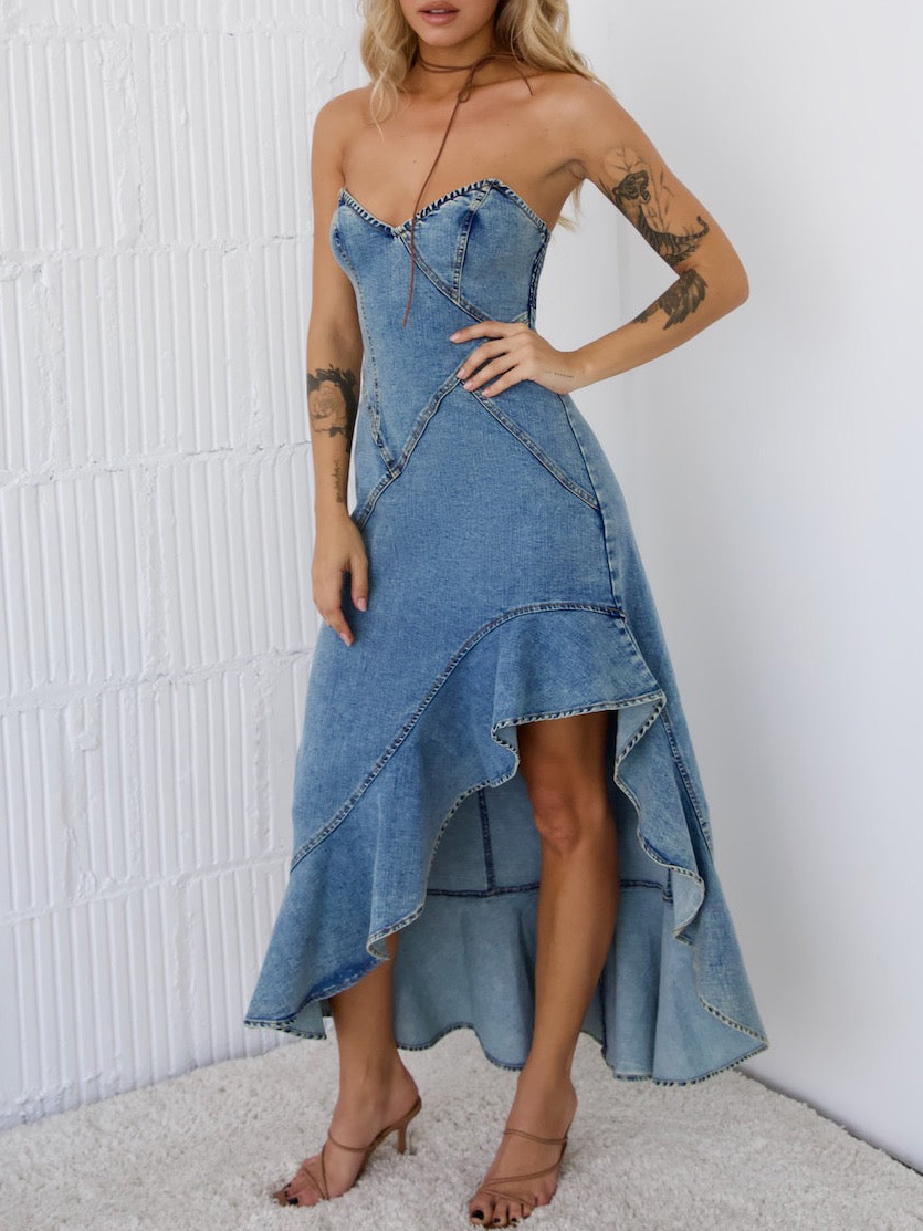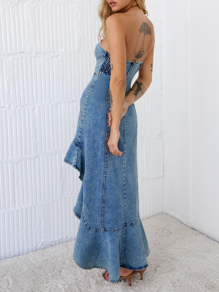 Ladies Summer Sexy Slim Corset Denim Hip Wrapped Fishtail Dress