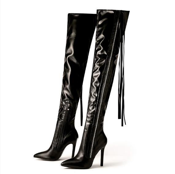 Long Boots Stiletto Heel Tassel Thin Effect Sexy Nightclub High Heel over the Knee Side Zipper Long Boots over the Knee Knight Boots