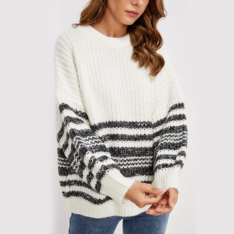 Plus Size Lady Pullover Tops Women Clothes round Neck Woven Sweater Autumn Winter Bottoming Shirt