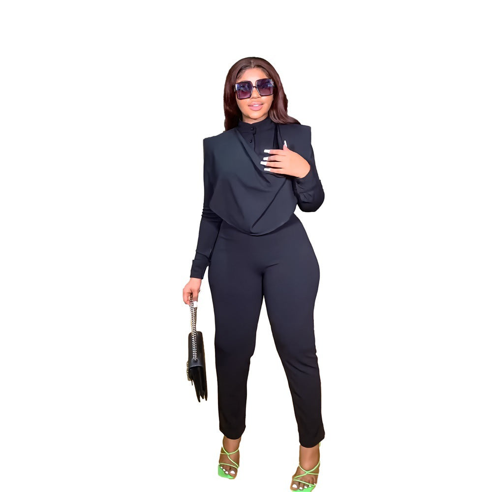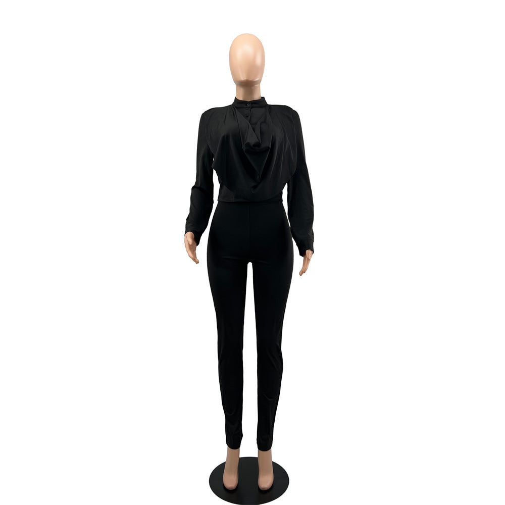 Long Sleeved Cardigan Round Neck Top Slim Trousers Business Suit Women two piece set