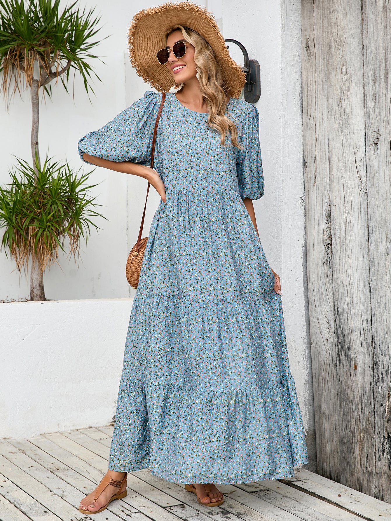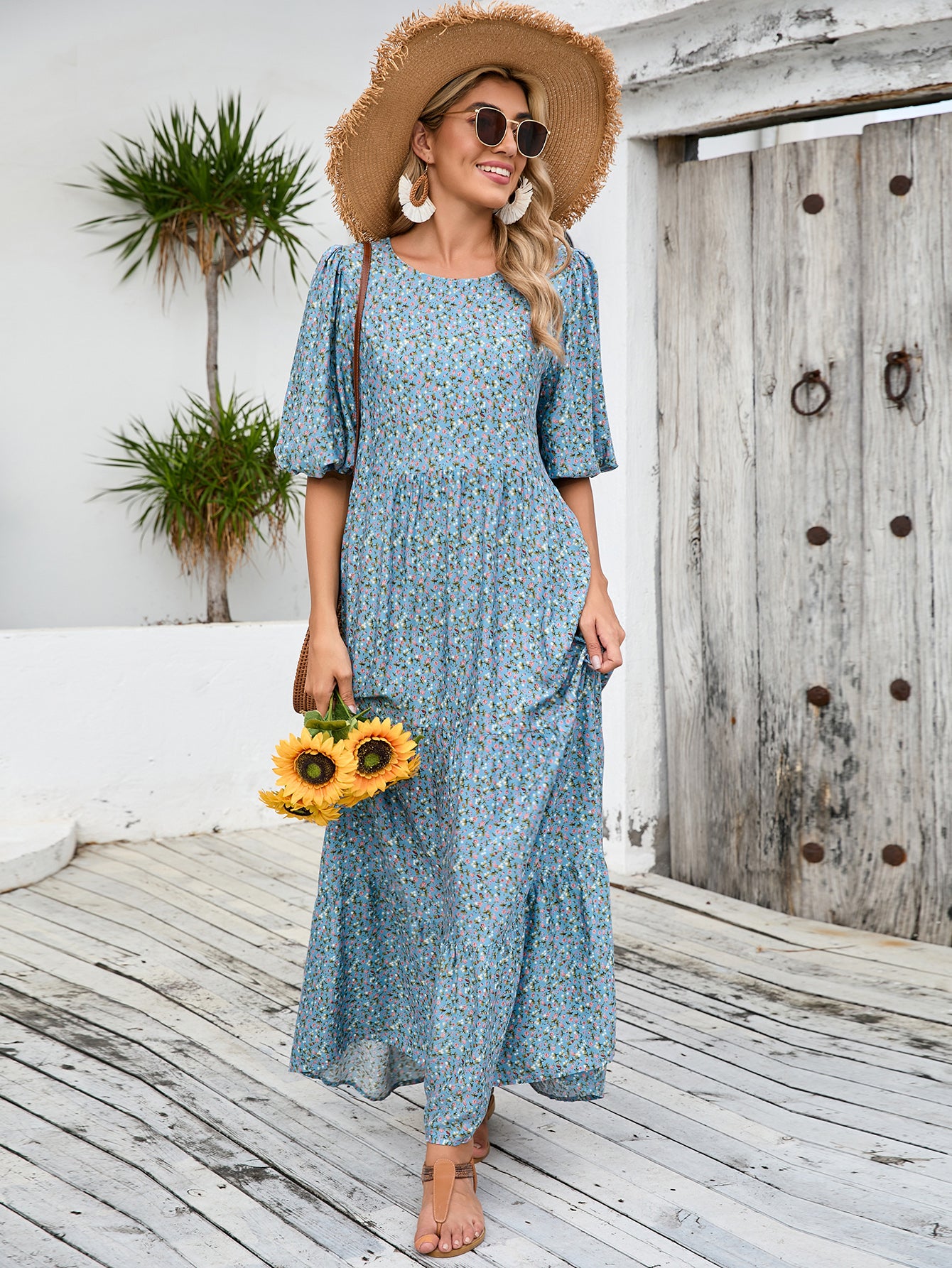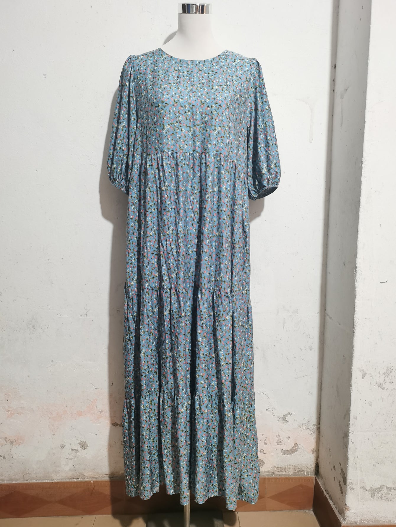 Loose Round Neck Mid Sleeve dress plus size Retro Casual Floral Long Dress