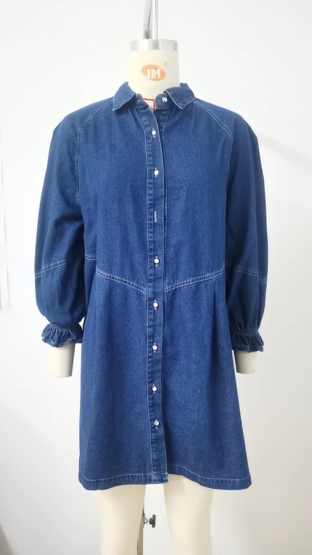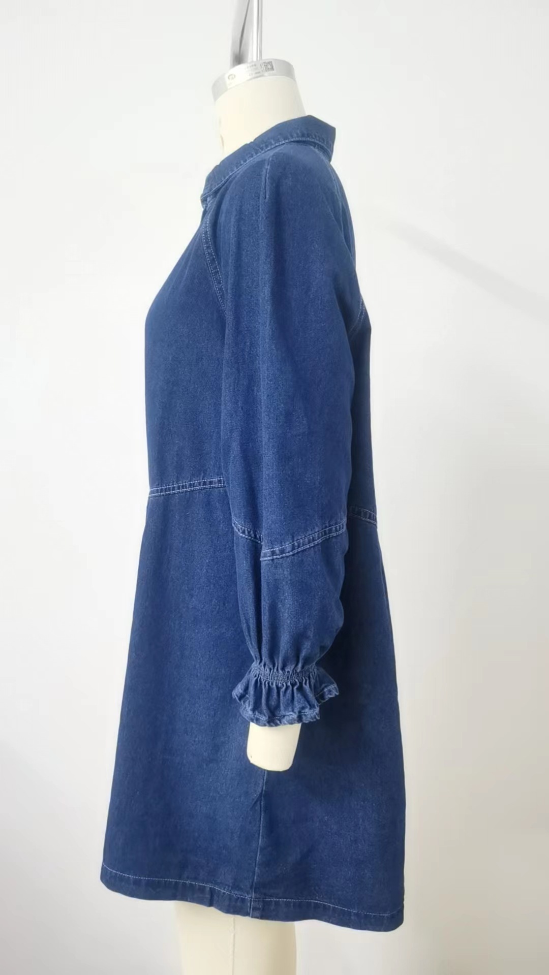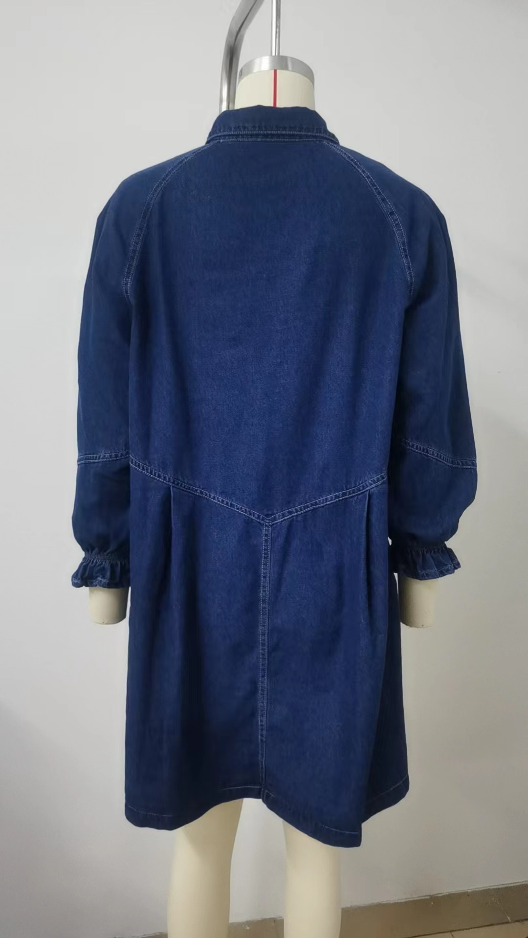Loose Washed out Long Sleeve Stitching Denim Dress Midi Dress for Women