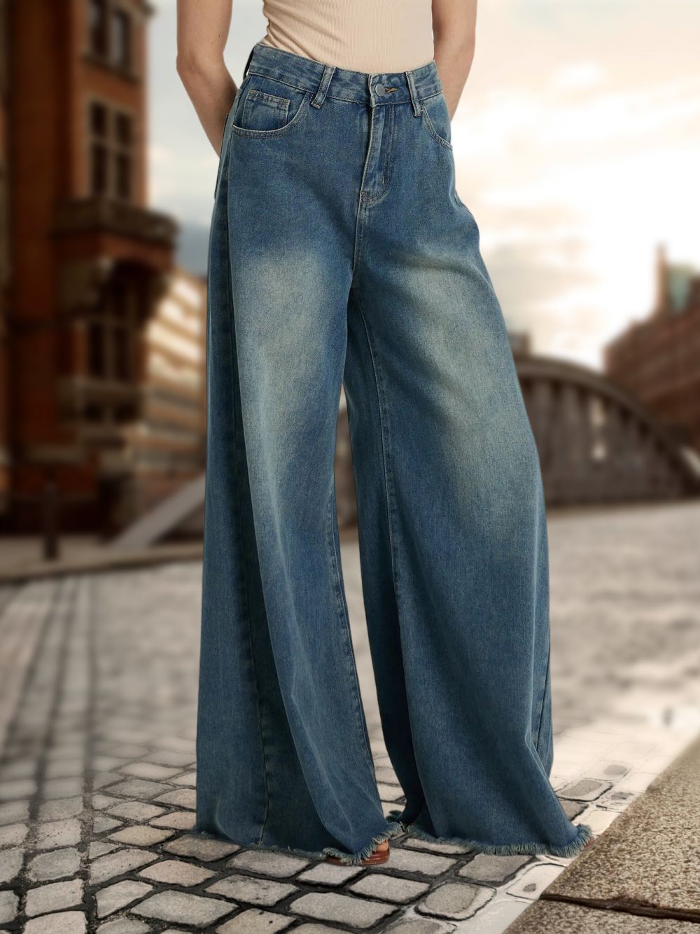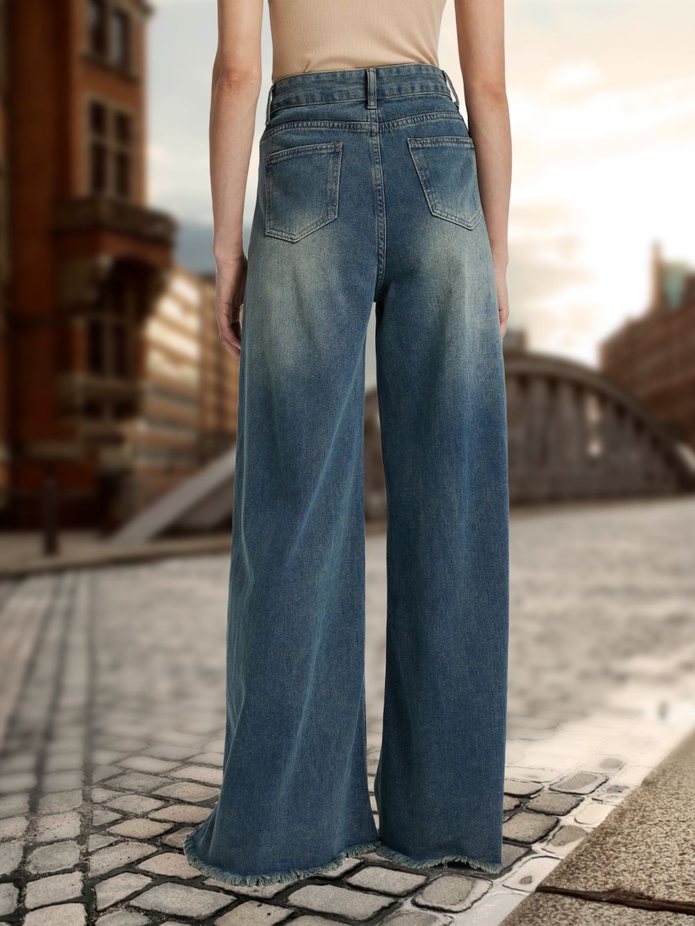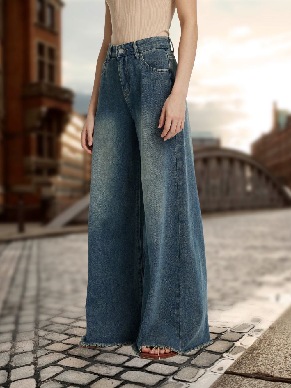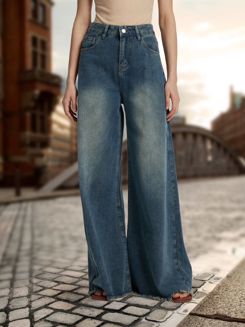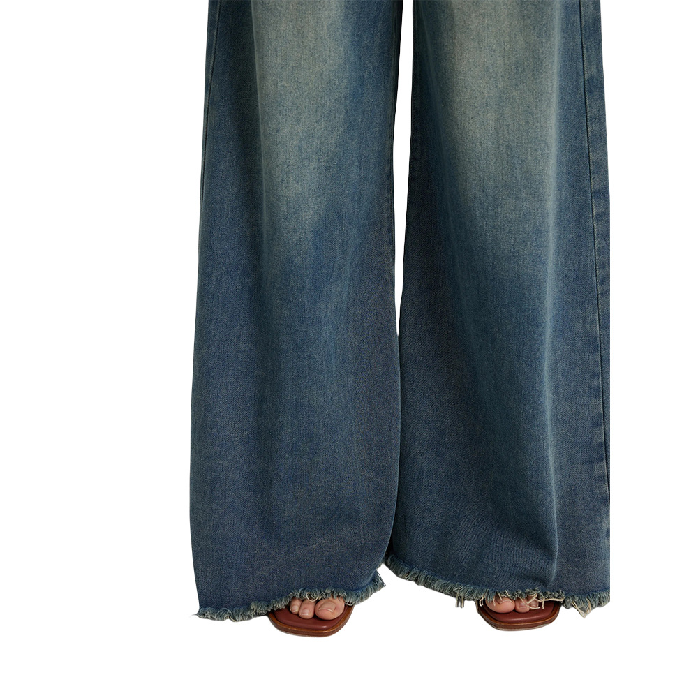 Millennium Washed out Vintage Wide Leg Denim Autumn Winter Loose Drape Elephant Leg Mop Pants Jeans