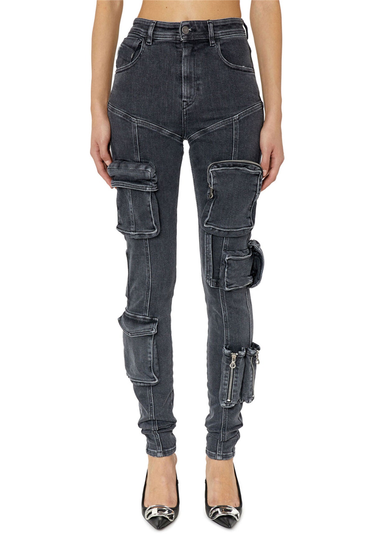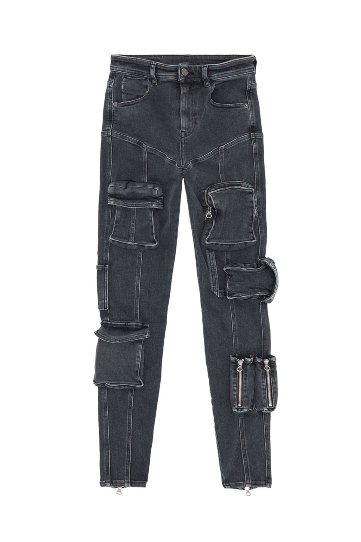 Modern Fashionable Overalls Spring Summer Pocket High Waist Slim Fit Slim Fit High Elastic Denim Tapered Overalls