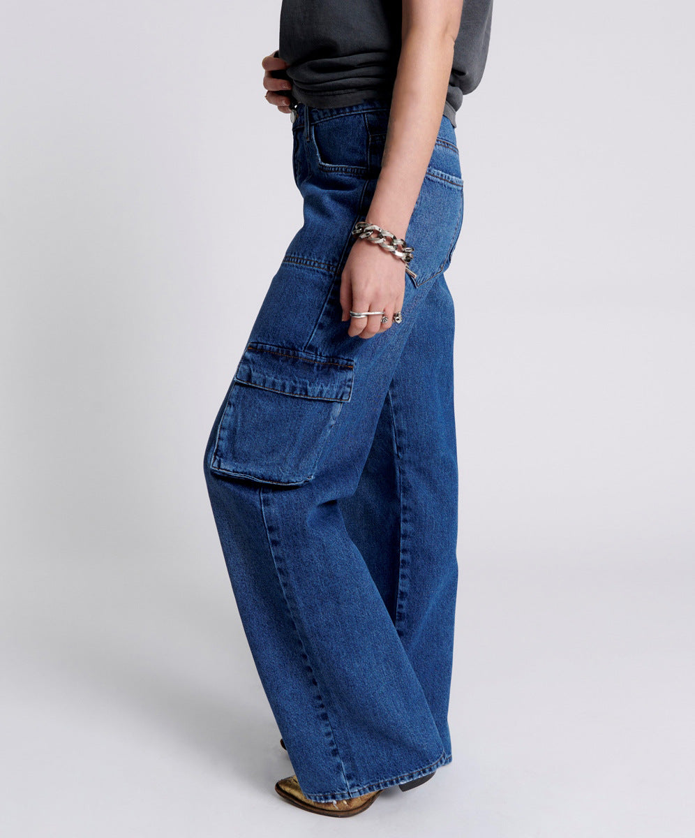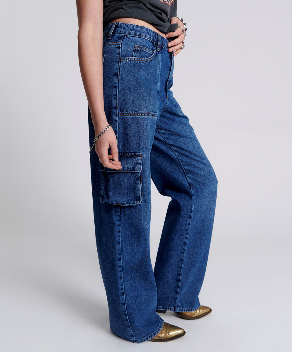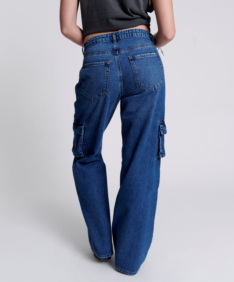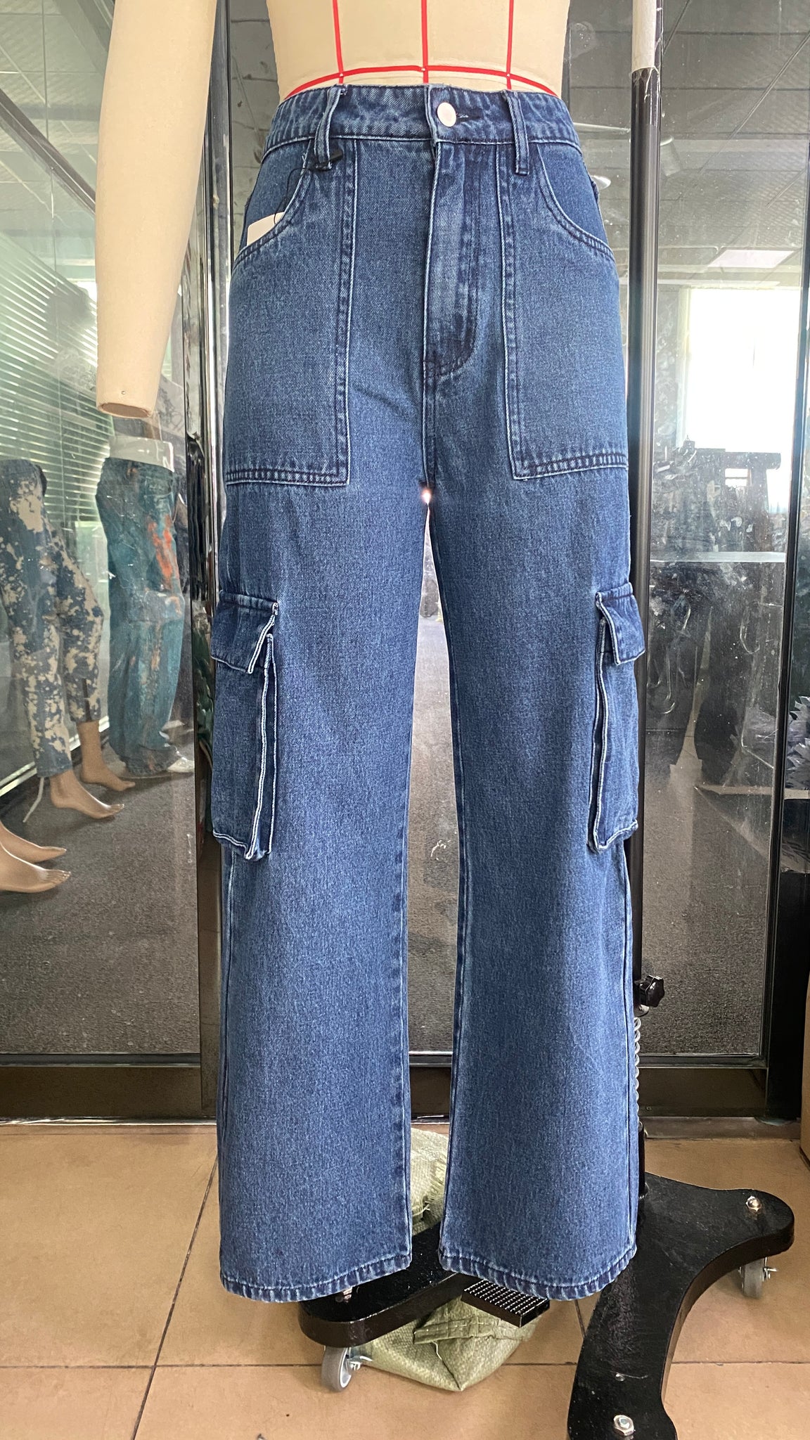 Multi Bag Jeans Women High Waist Tooling Pants Loose Washed Jeans