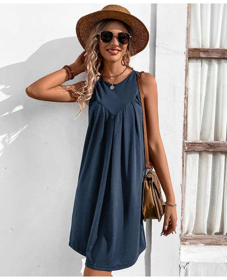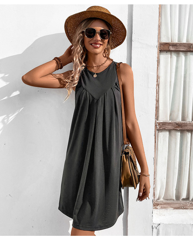 Multi Color Summer Women Wear Sleeveless Solid Color Vest Dress