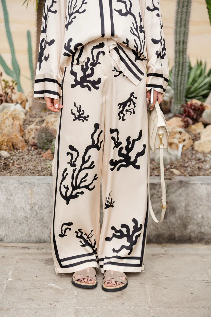 Multicolor Printing Satin Vacation Loose Casual Two Piece Set