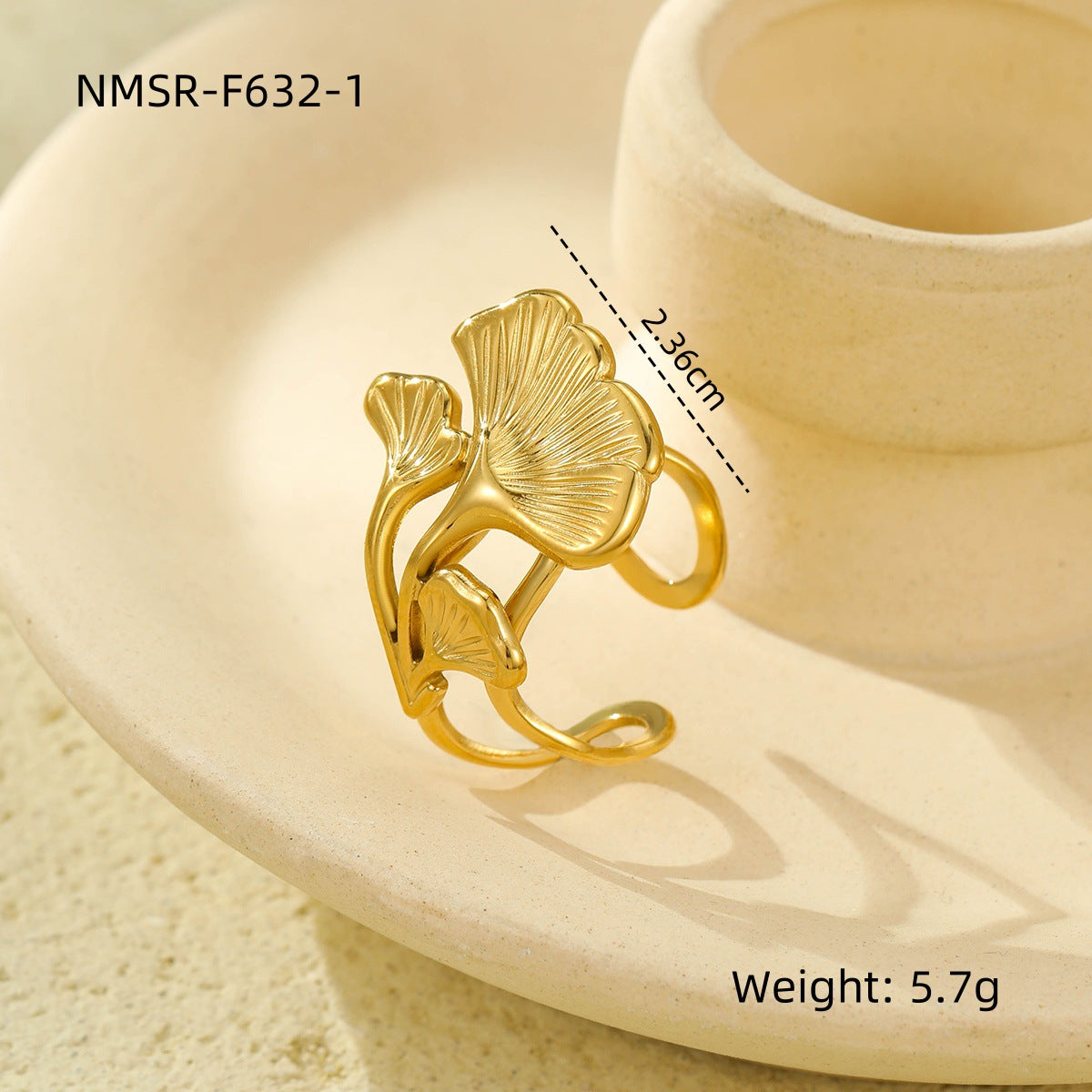 Niche High Sense Ring Ginkgo Leaf Leaves Simple Titanium Steel Ring Women 18K Gold Bracelet Accessories