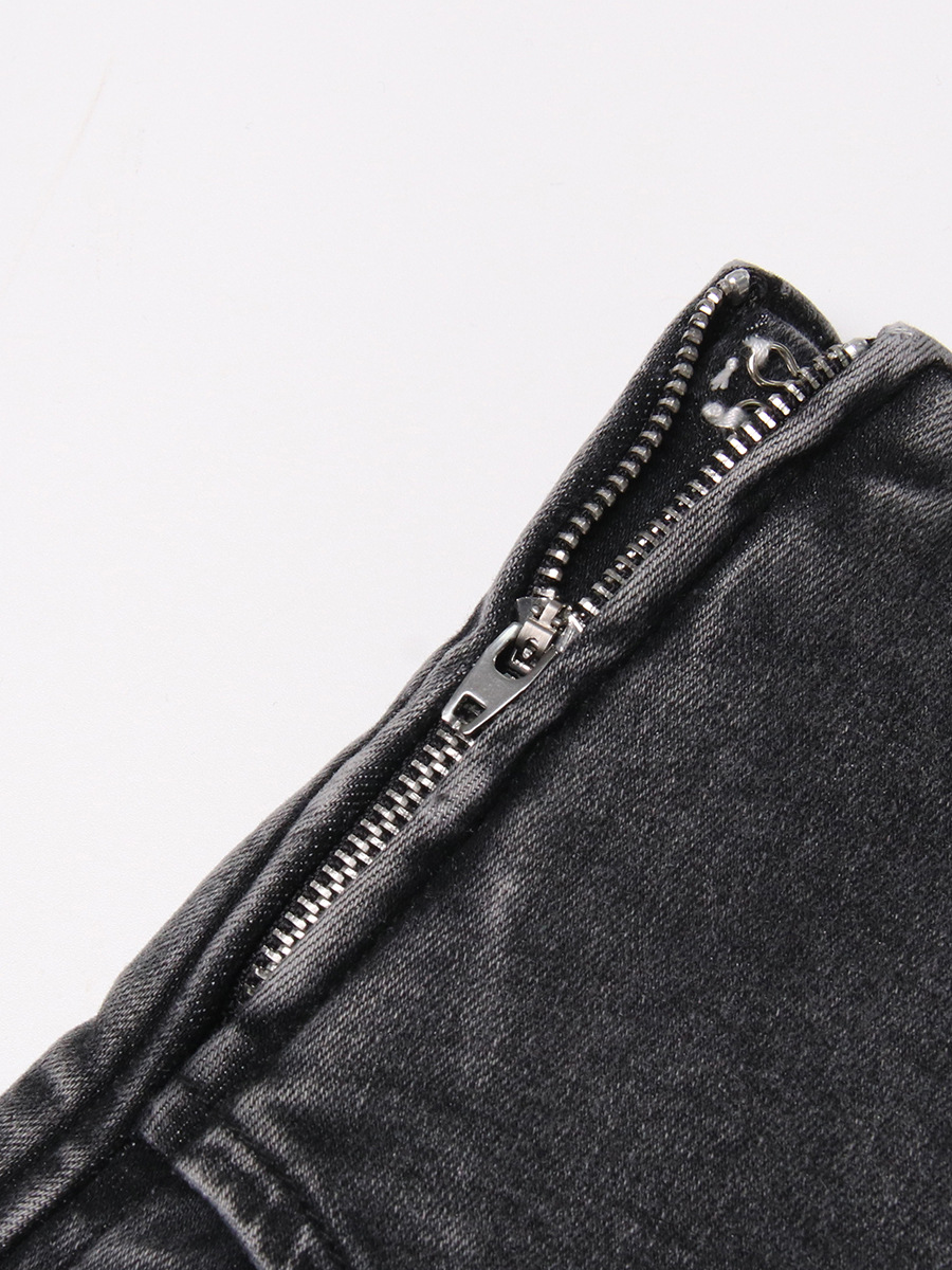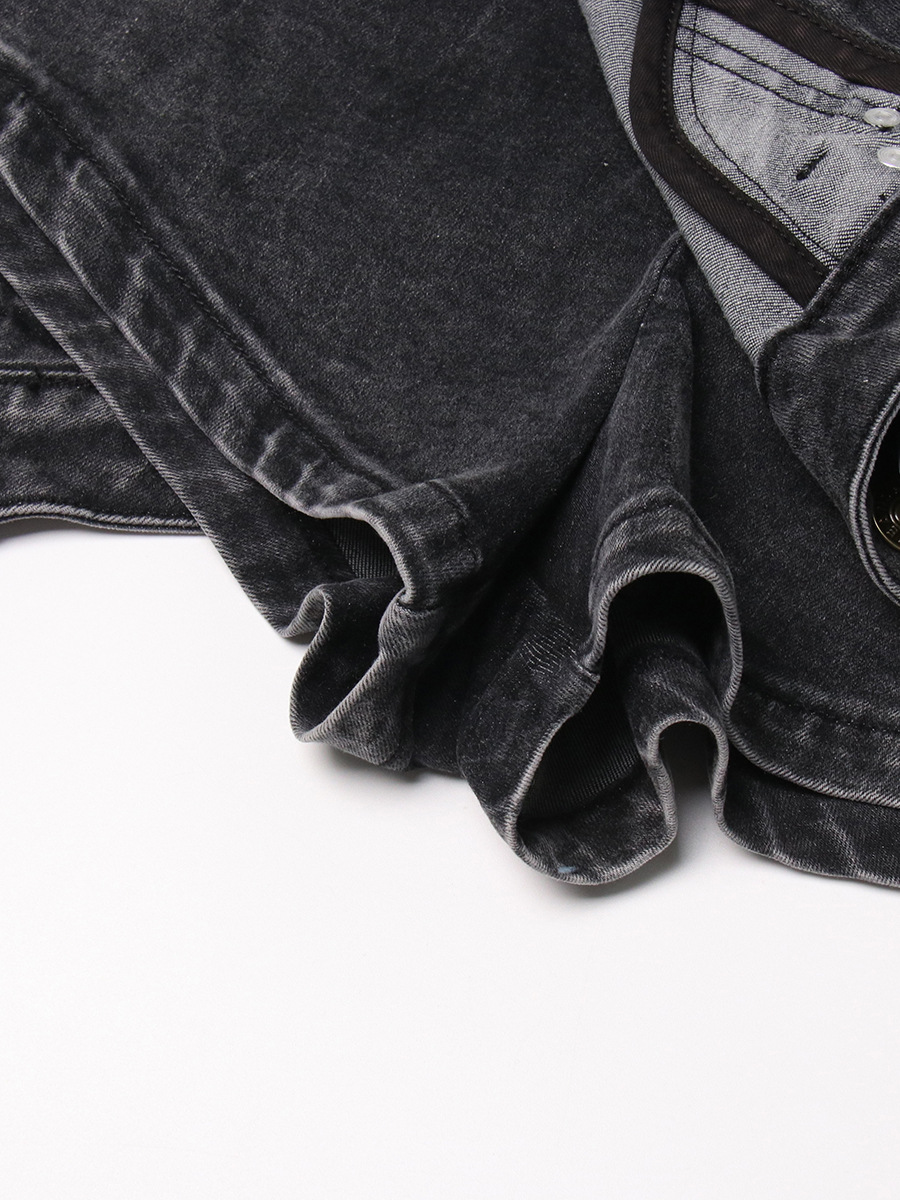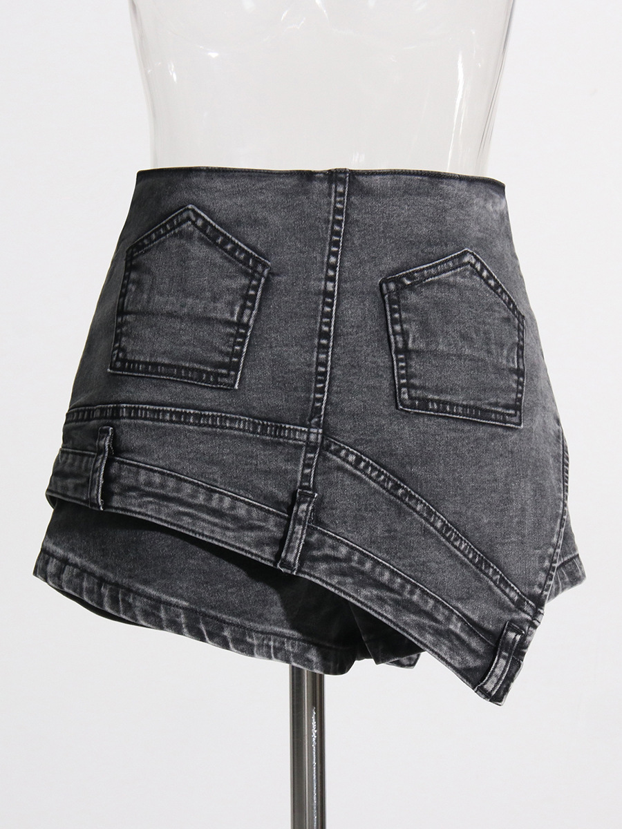 Personality Street Denim Stitching Shorts Autumn High Waist Irregular Asymmetric Washed Worn Jeans Women