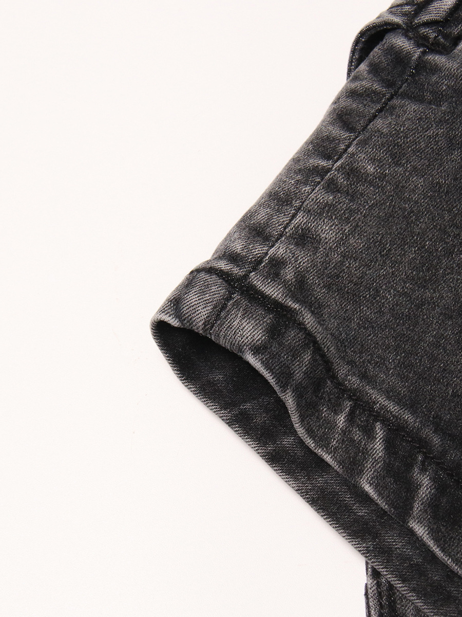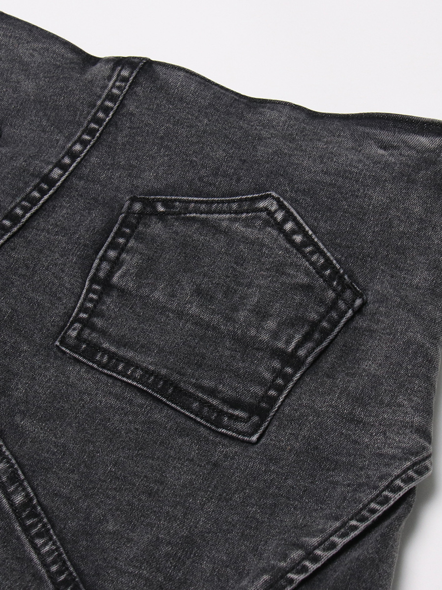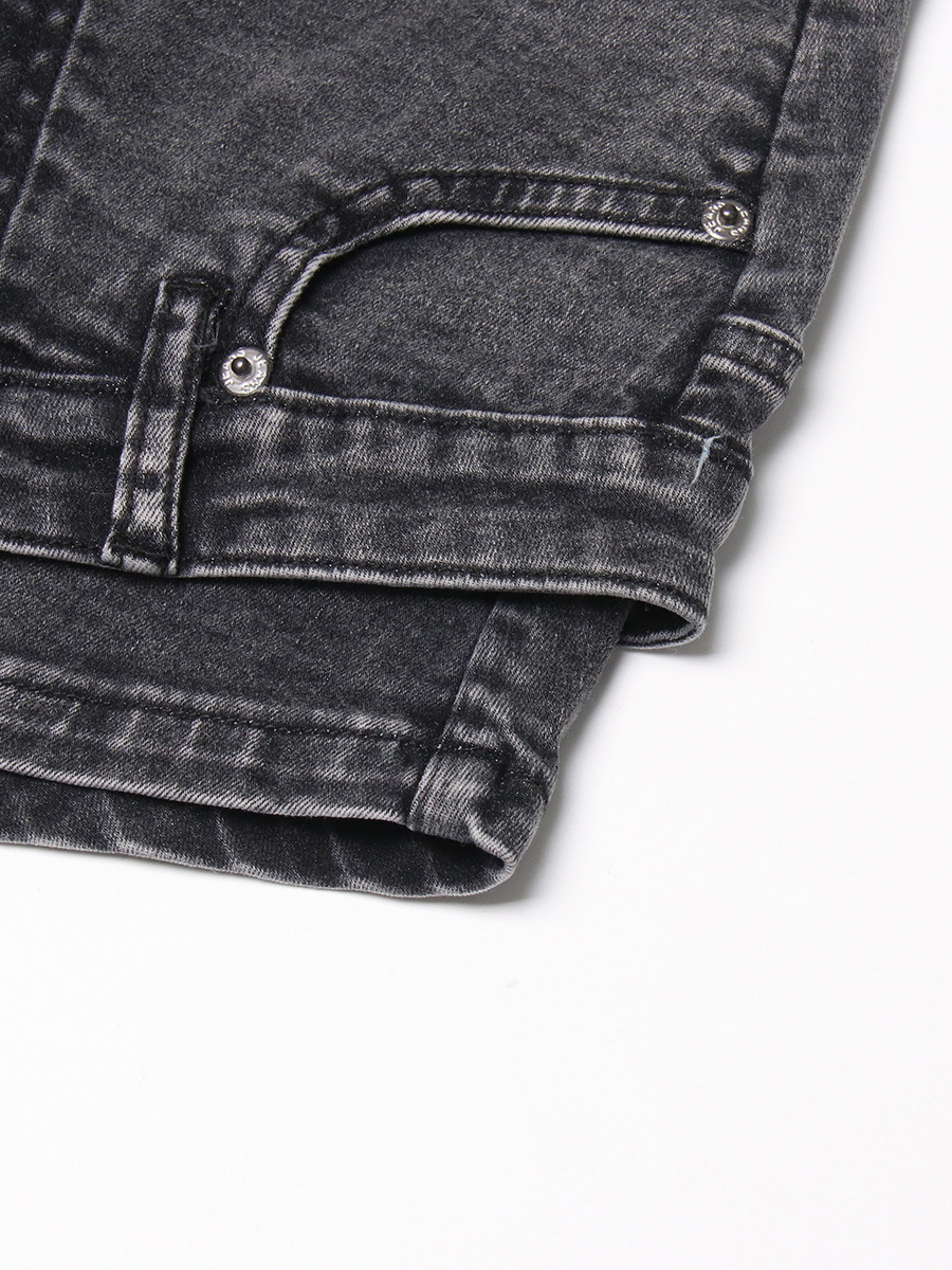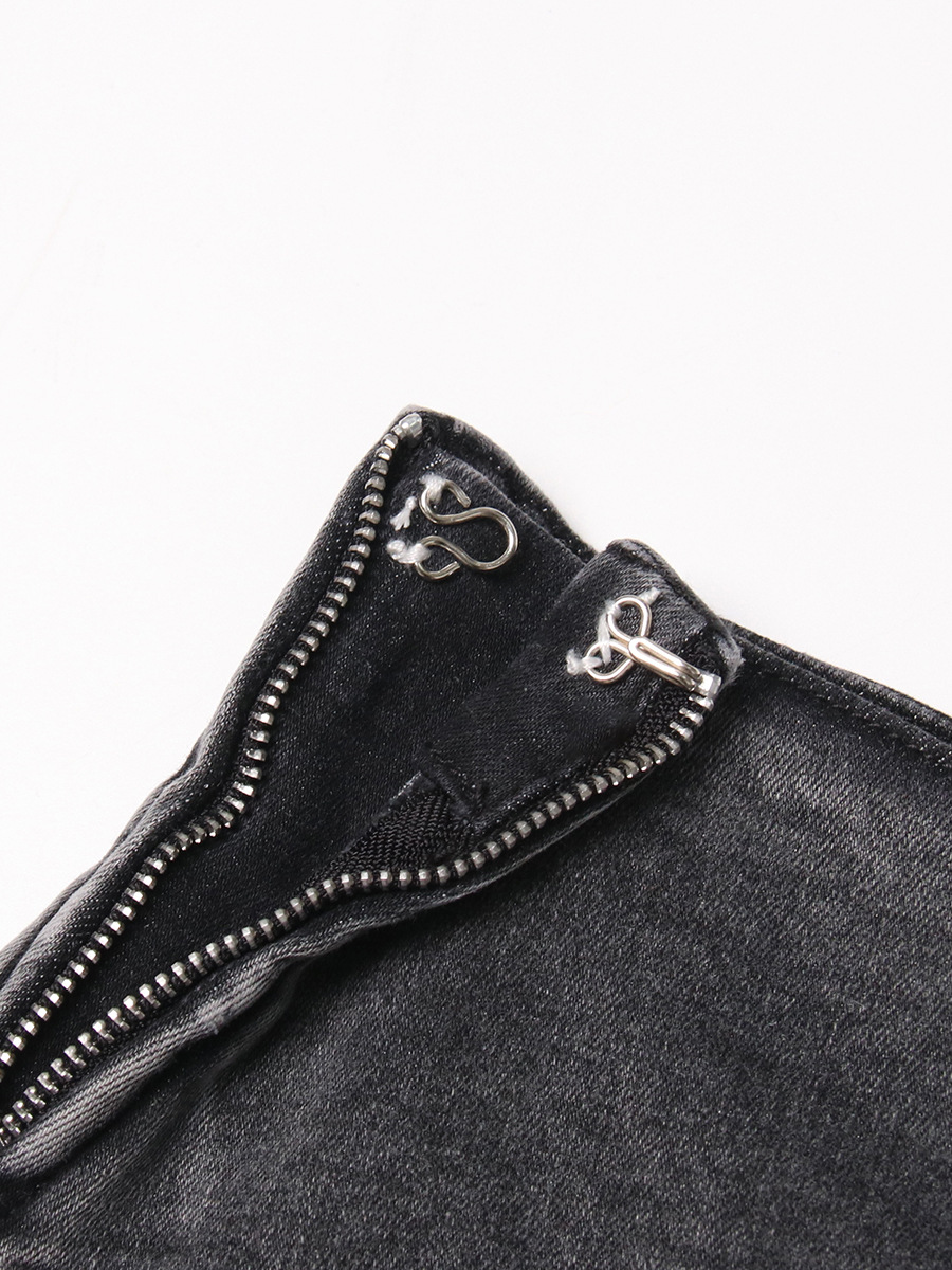 Personality Street Denim Stitching Shorts Autumn High Waist Irregular Asymmetric Washed Worn Jeans Women