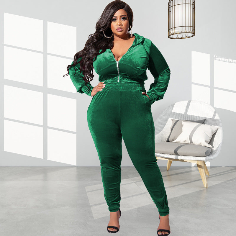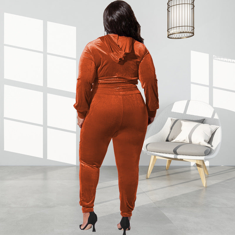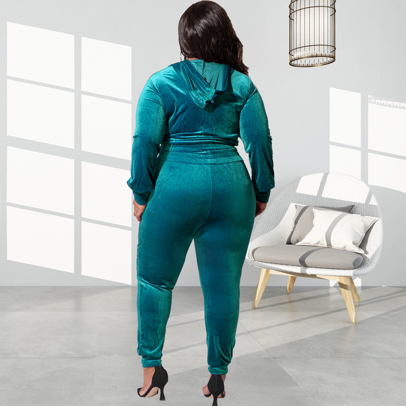 Plus Size Autumn Elastic Velvet Slim Fit Two Piece Set Women Suit