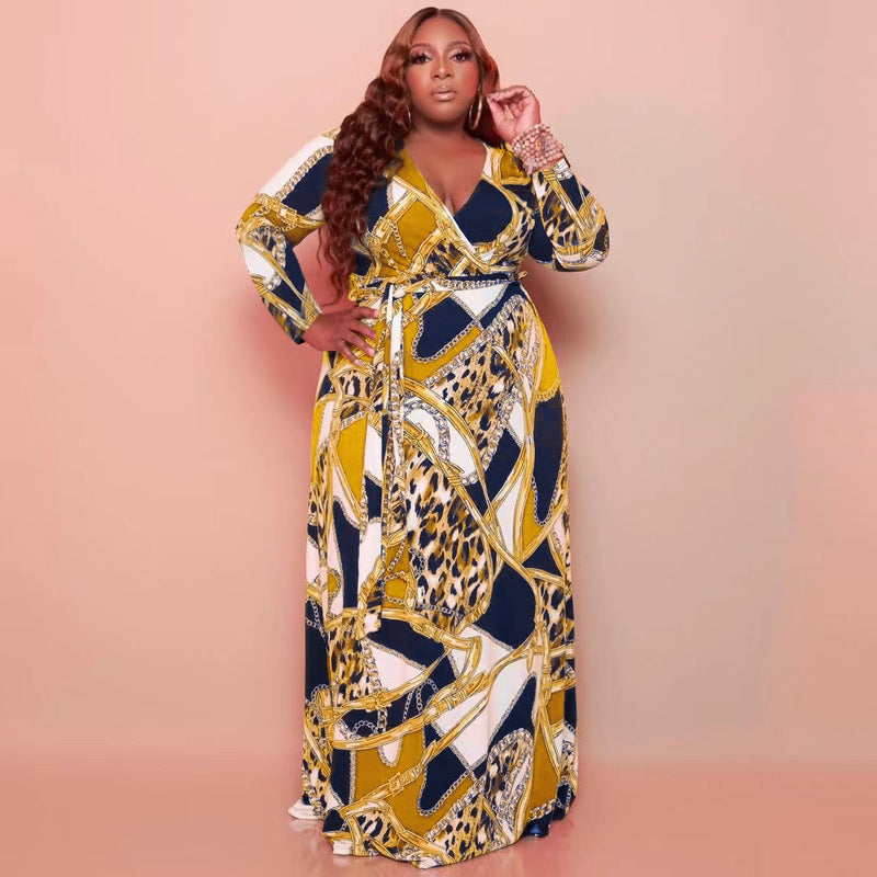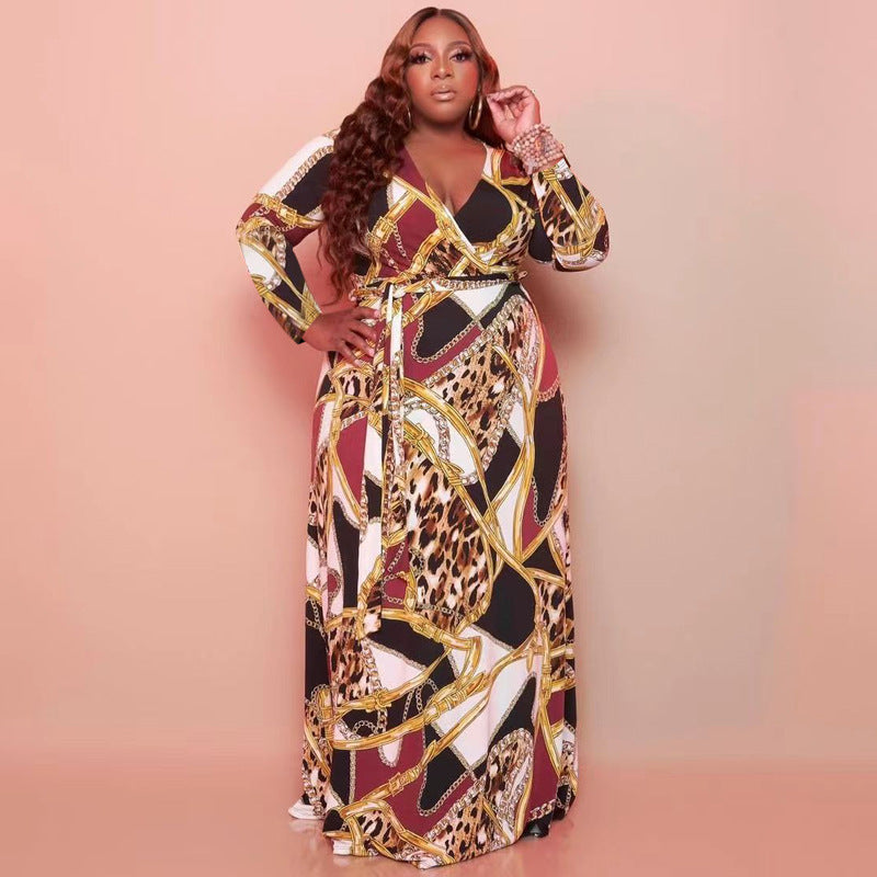 Plus Size Autumn Winter V neck Stretch Knitted Women Dress With Belt