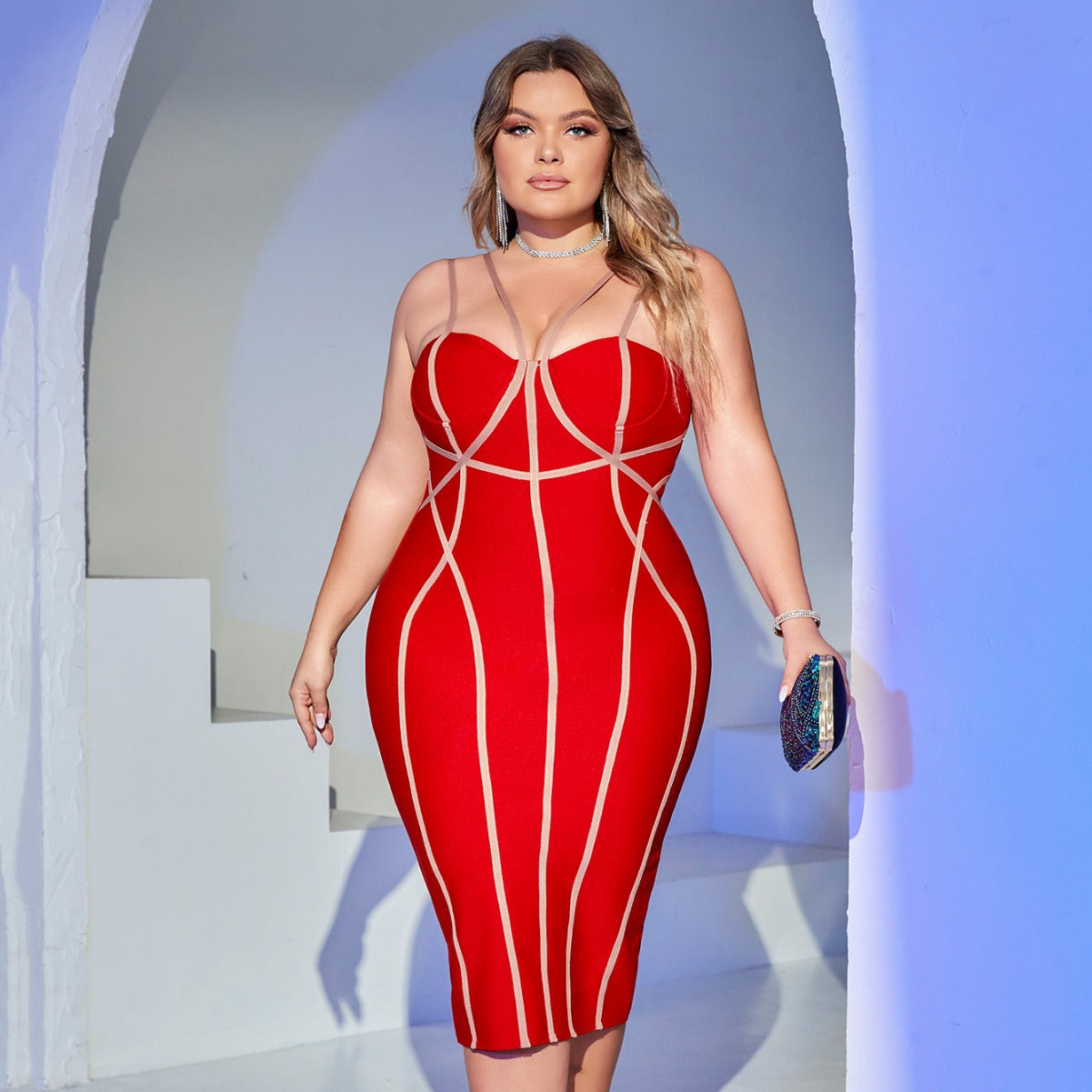 Plus Size Bandage Dress Evening Dress Strap Niche Stitching Bandage Dress