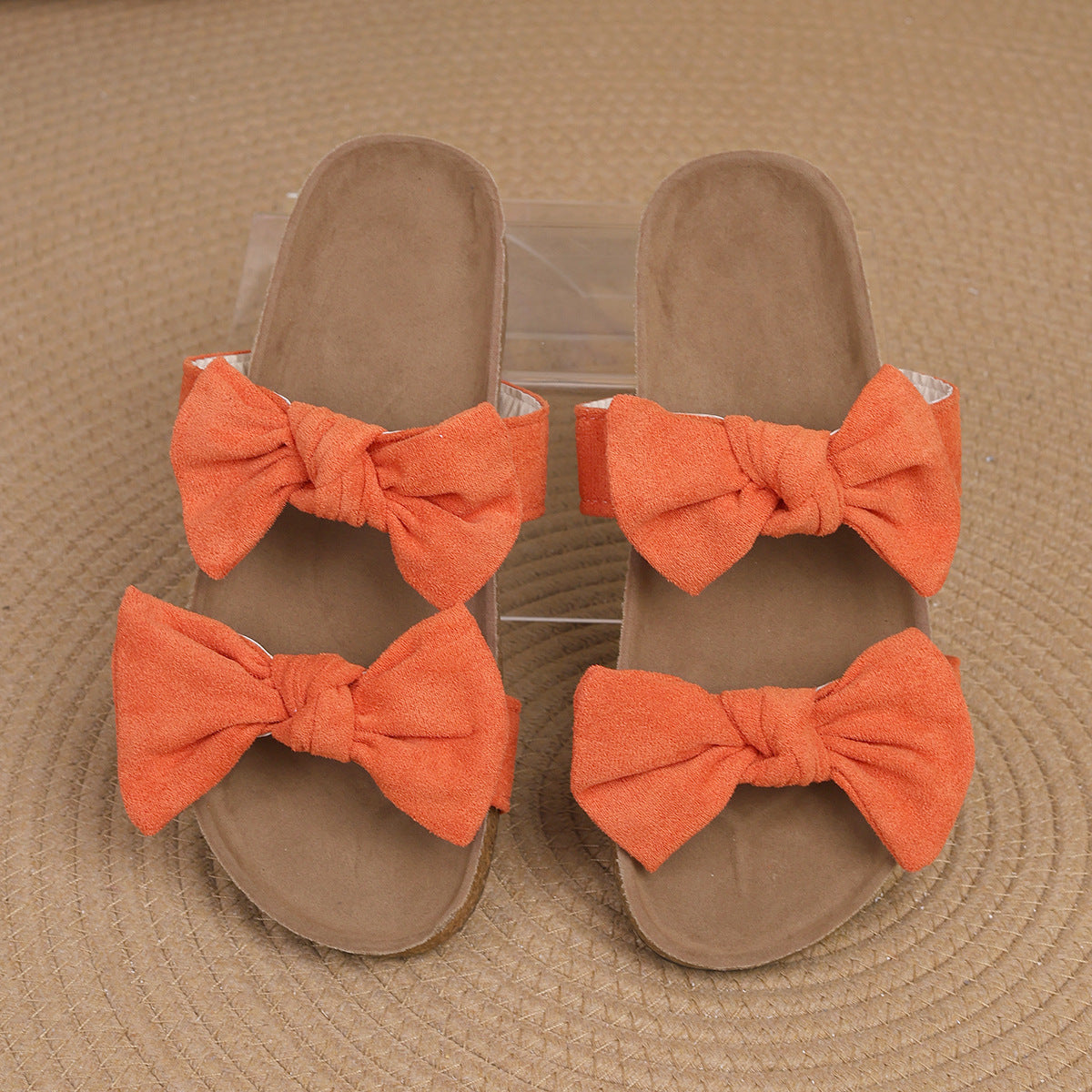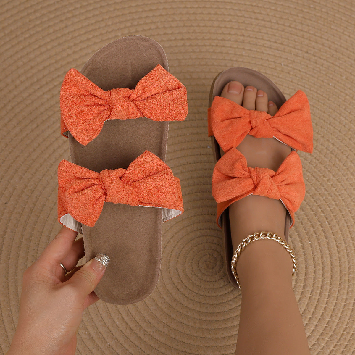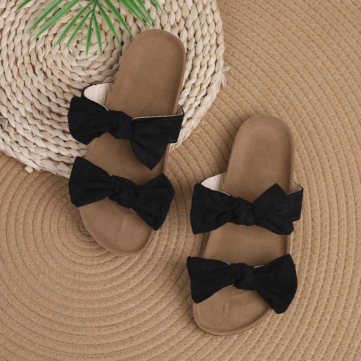 Plus Size Bow One Word Slippers Women Flat Outdoors Sandals Flat Slippers