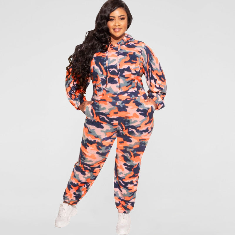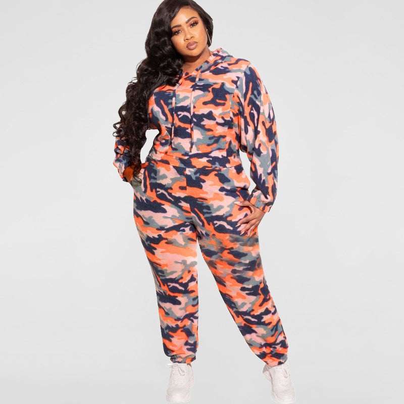 Plus Size Camouflage Loose Casual Two-Piece Suit Women Suit