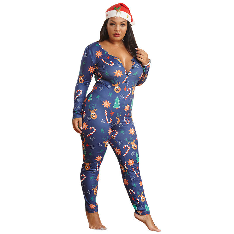 Plus Size Christmas Knitted Printed Tight Sexy Home Wear Women Jumpsuit