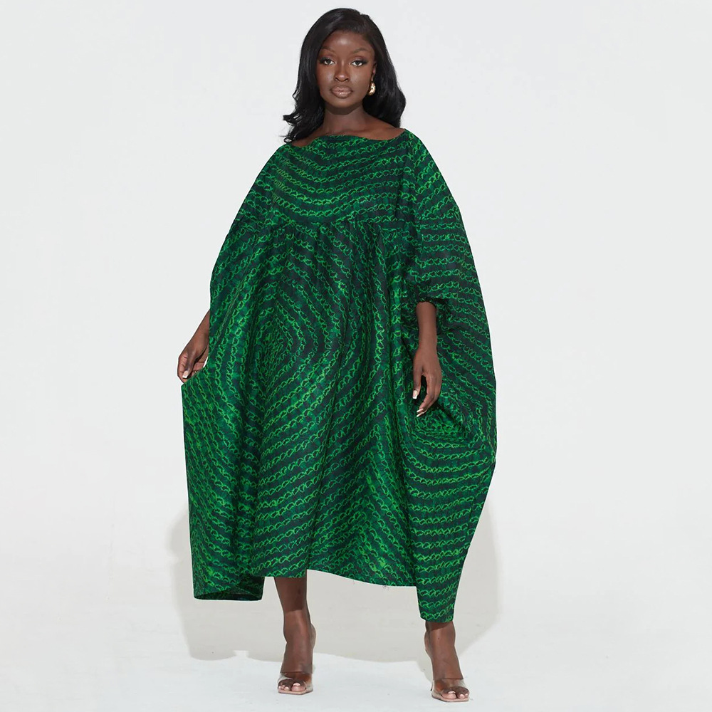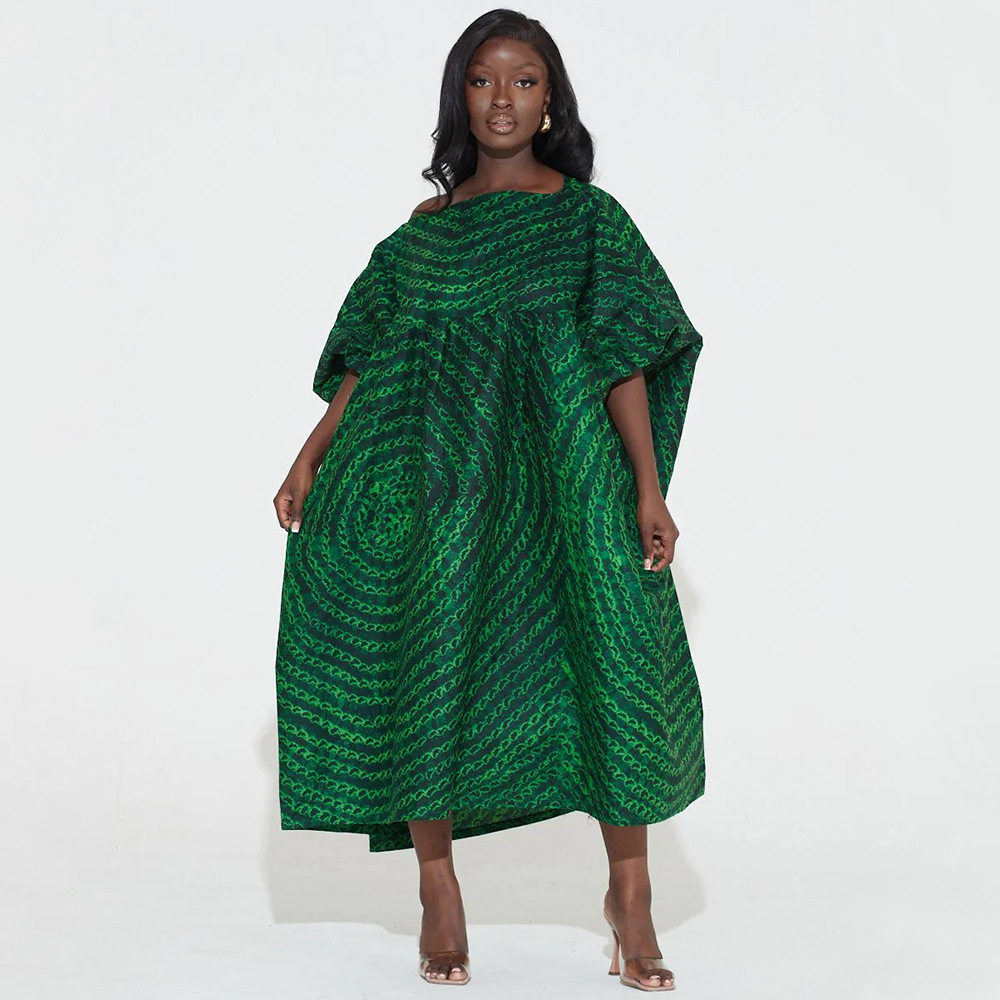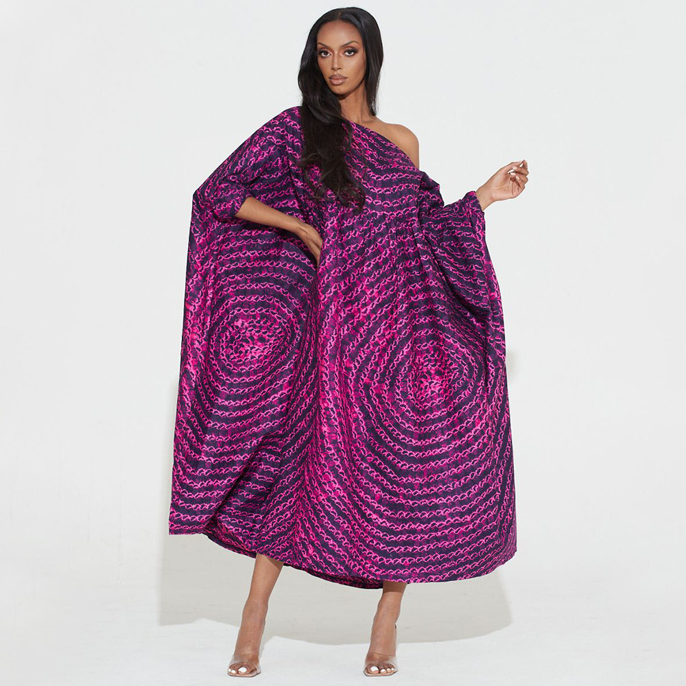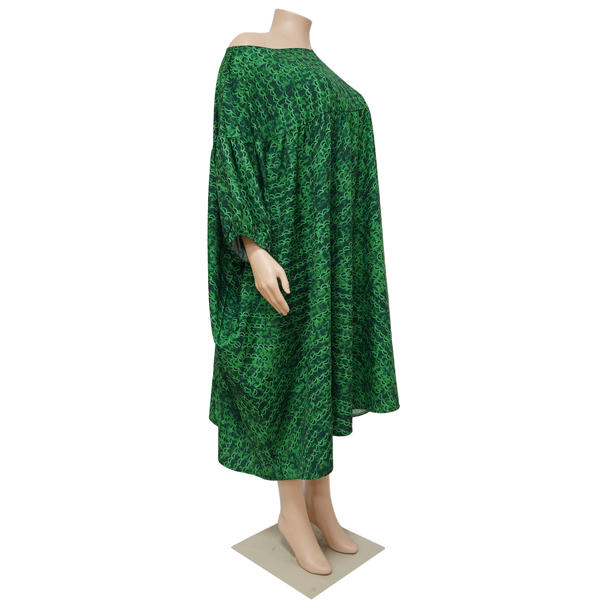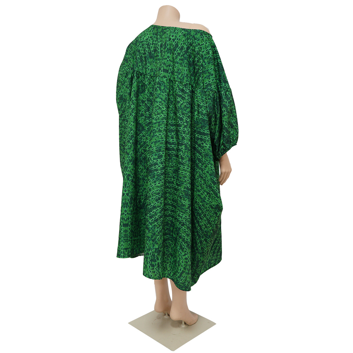Plus Size Dress Women Off-Neck Printed High Waist Loose Big Hem Dress