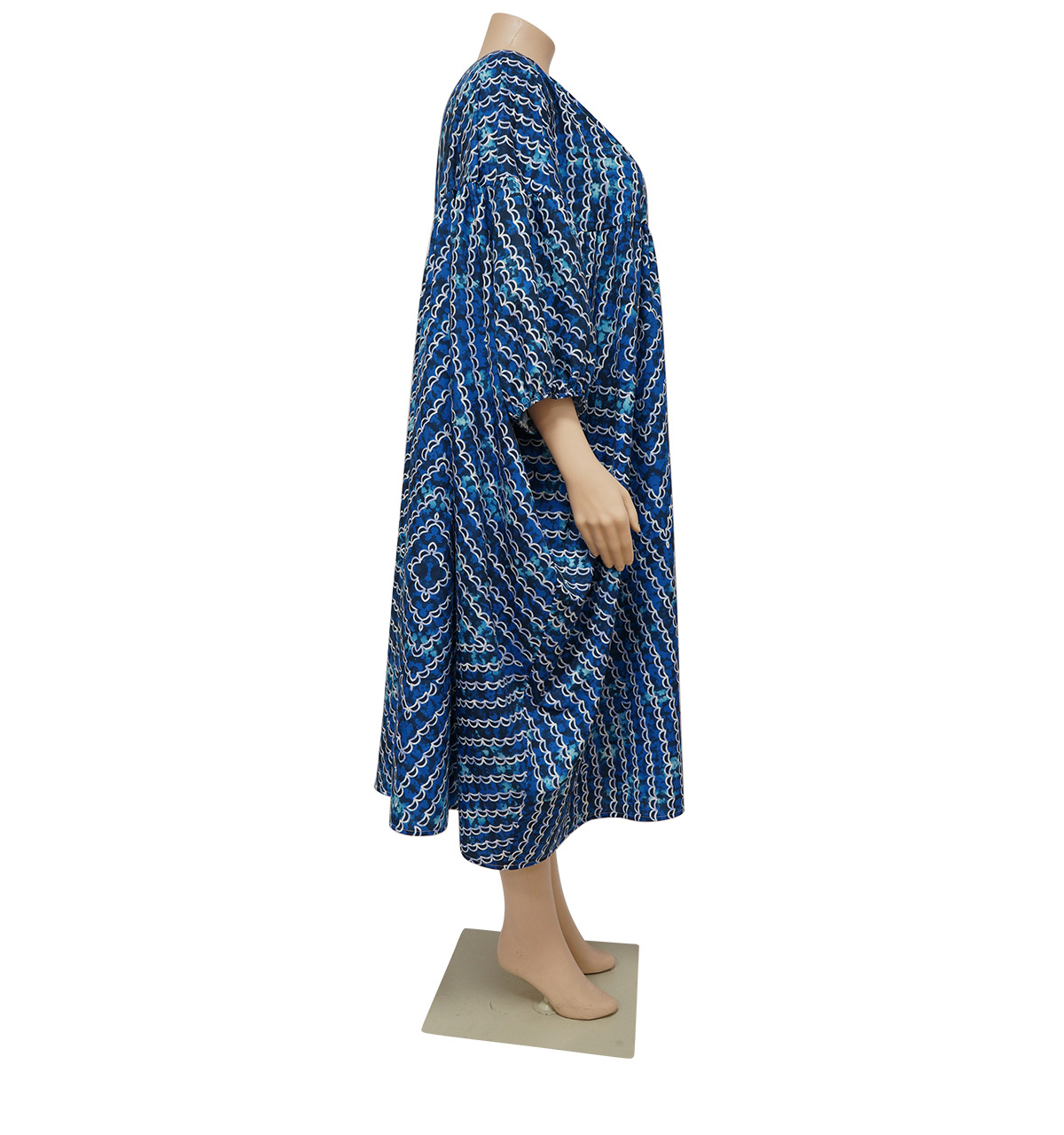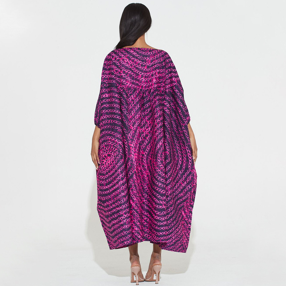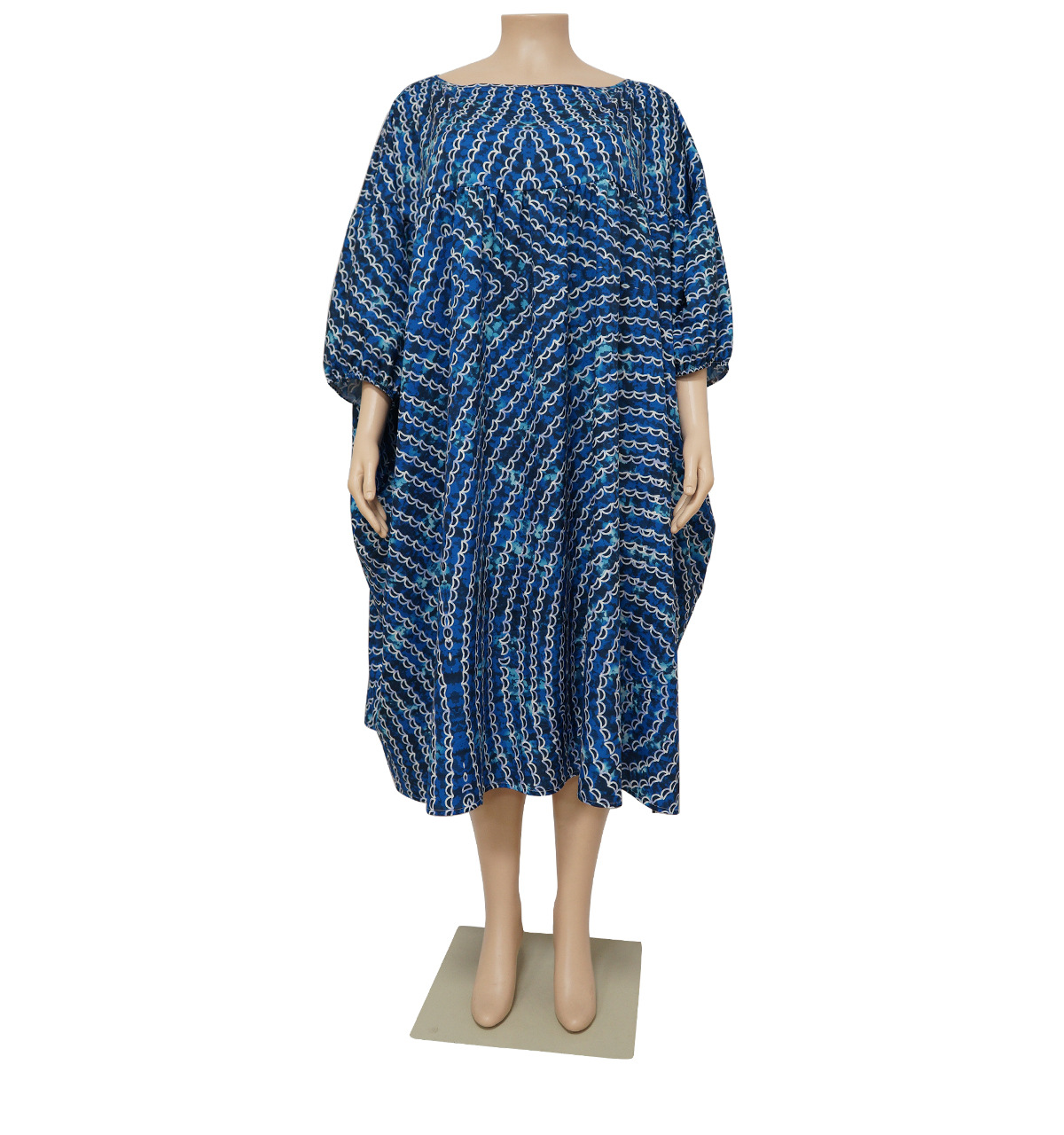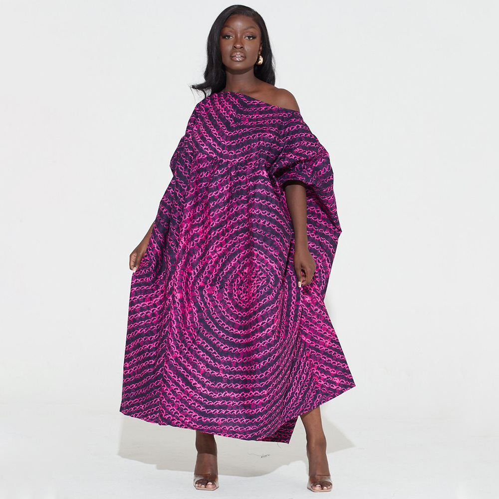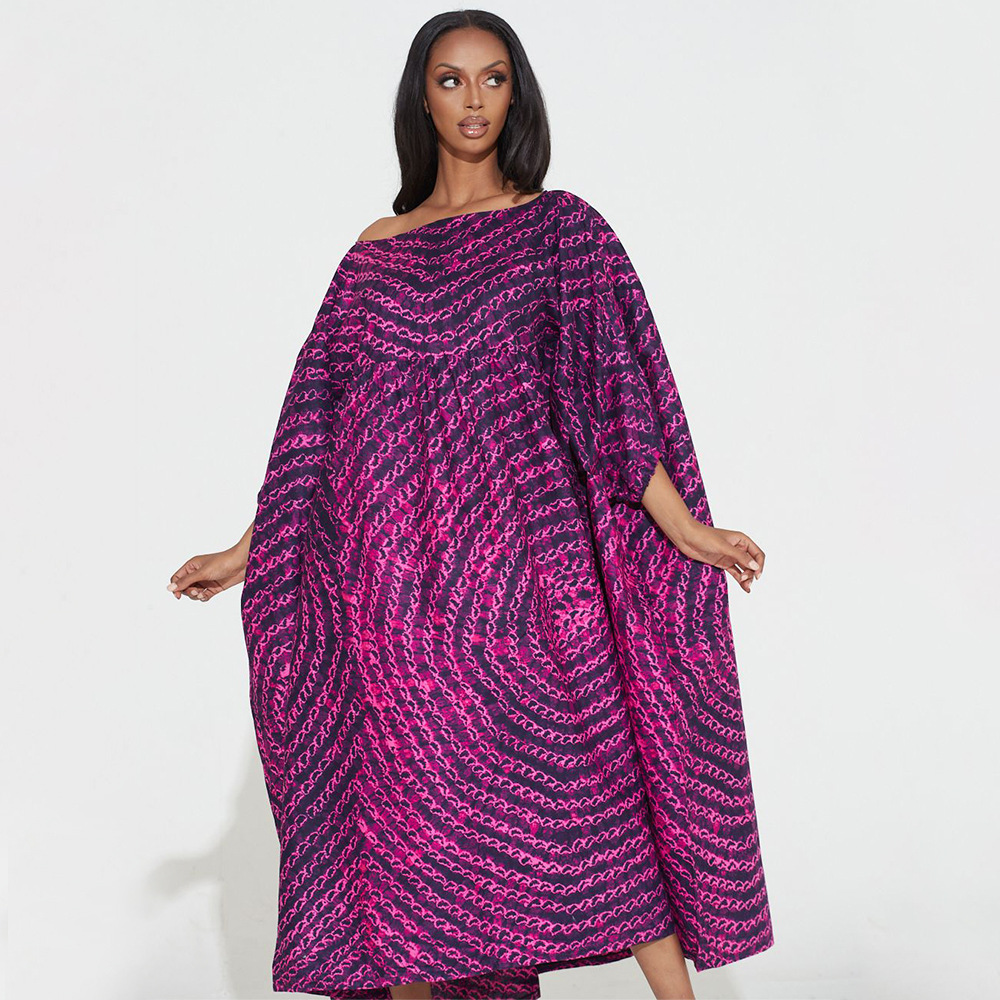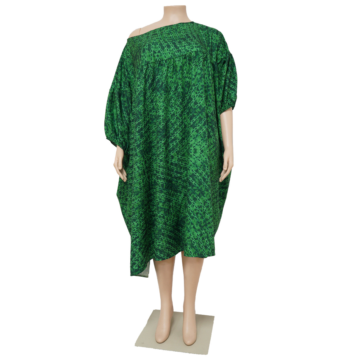 Plus Size Dress Women Off-Neck Printed High Waist Loose Big Hem Dress