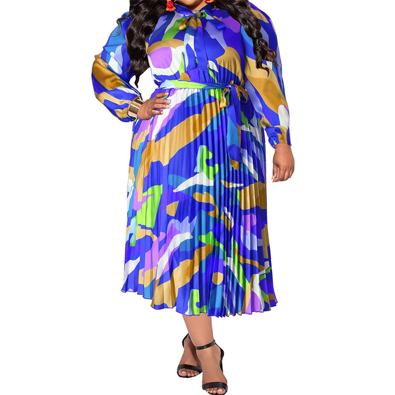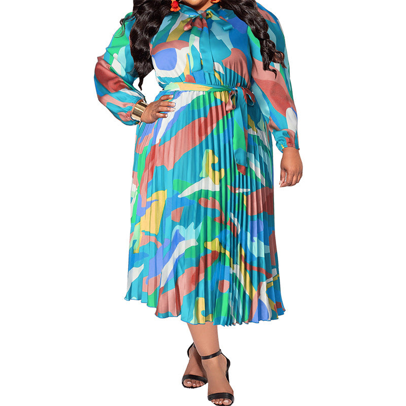Plus Size Fall Women Clothing Pleated Collar Long Sleeve Dress