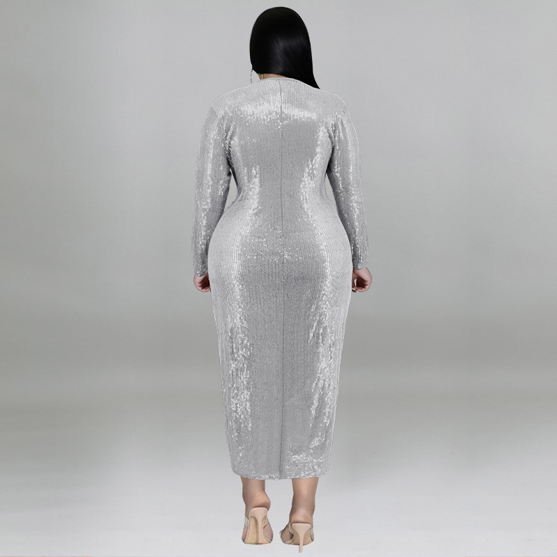 Plus Size Fall Women Clothing Velvet Bottom Embroidered Sequined Dress