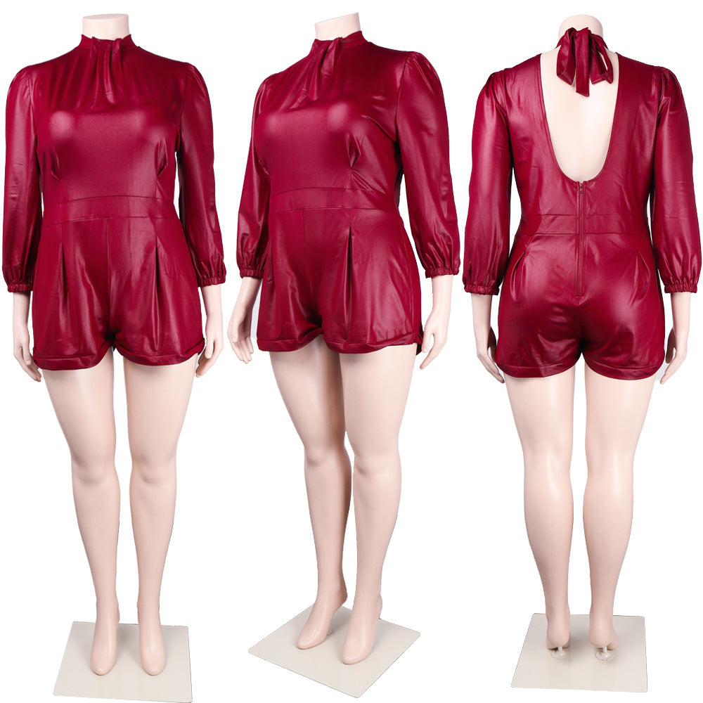 Plus Size Long Sleeve Hollow-out Lace-up Zipper Jumpsuit