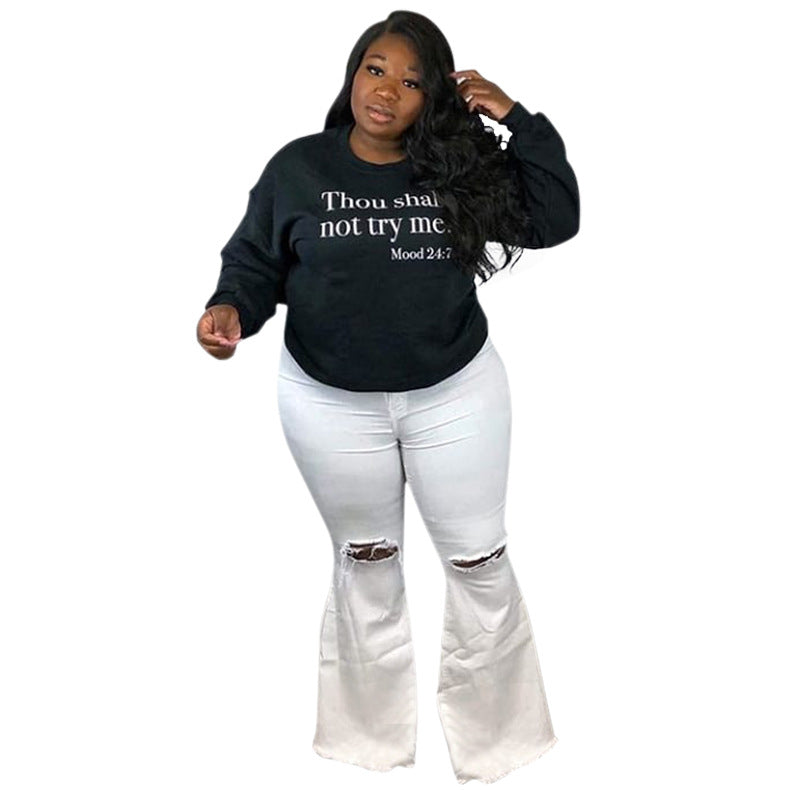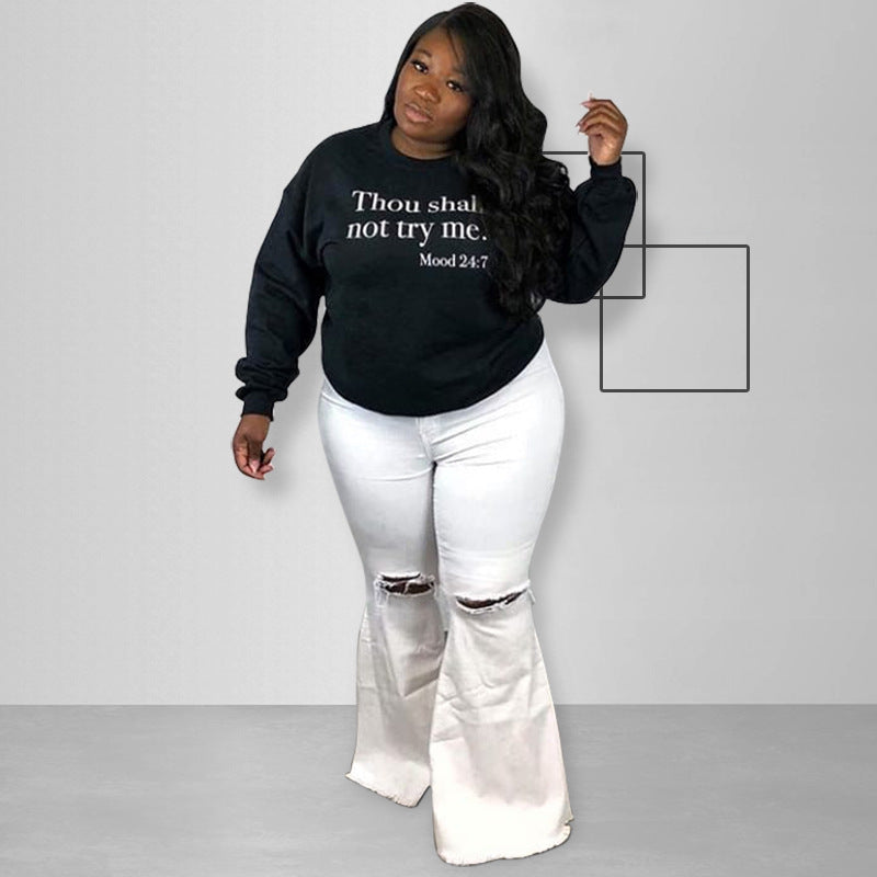 Plus Size Loose Casual Letter Graphic Printing Stylish Sweater Women T-shirt