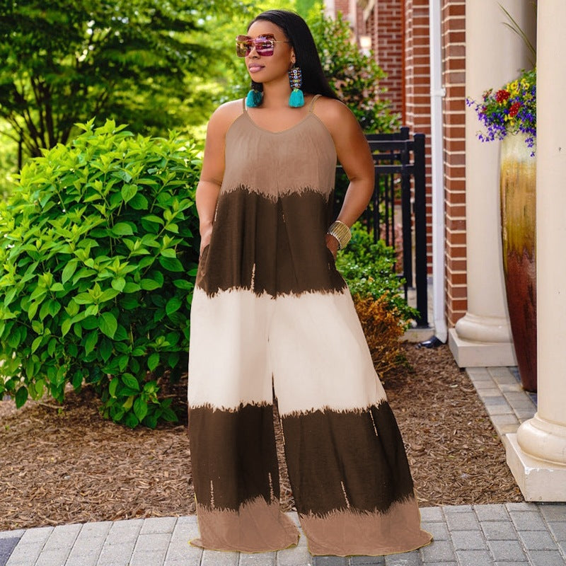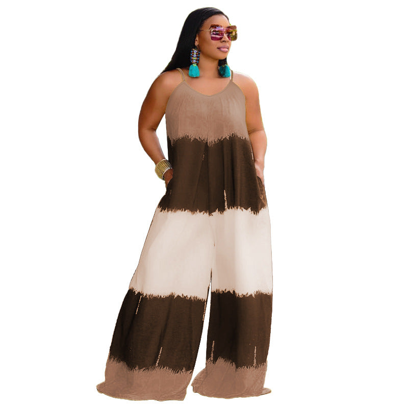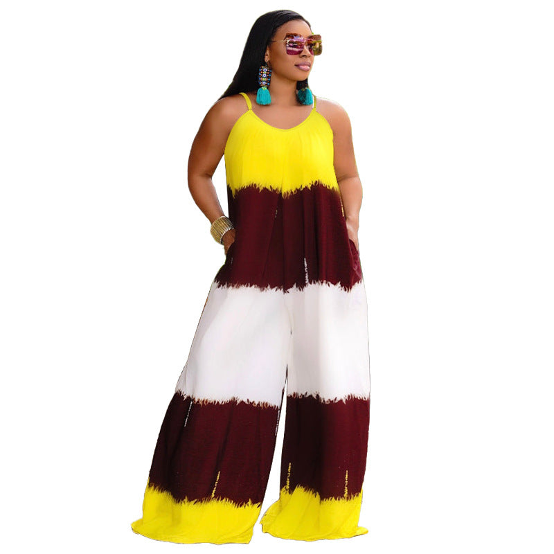 Plus Size New Patchwork Printed Suspenders Fashion Casual Long Women Clothes Jumpsuit