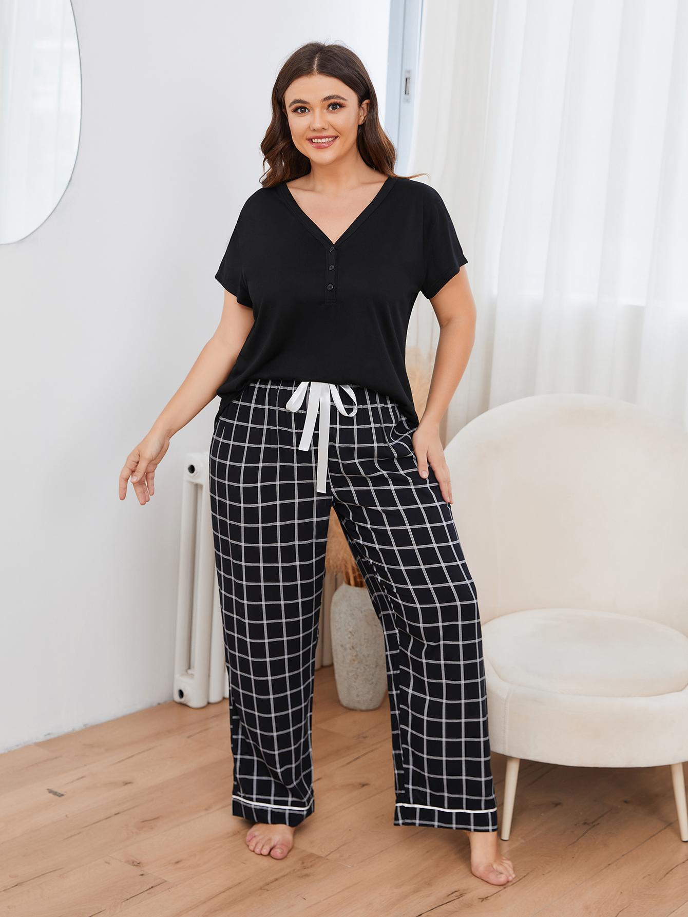 Plus Size Pajamas Women Spring Summer Short Sleeved Trousers Homewear