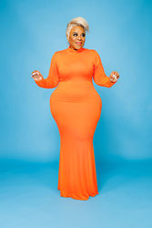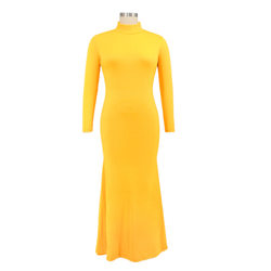 Plus Size Plus Size Fall Winter Solid Color Turtleneck Cotton Womens Long Sleeve round Neck Mop Dress
