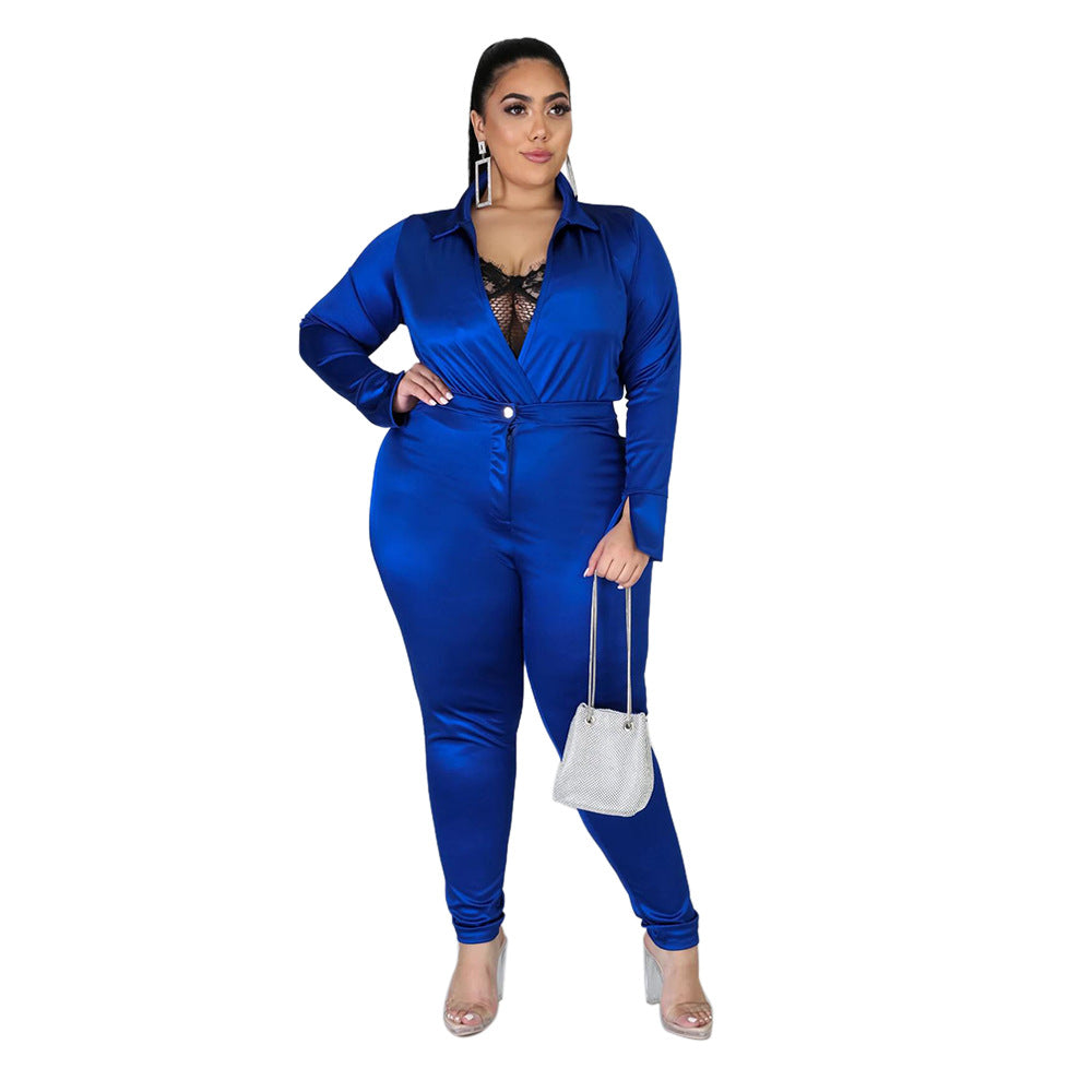 Plus Size Plus Size Polo Collar Solid Color Women Slim Fit Sexy Casual Suit