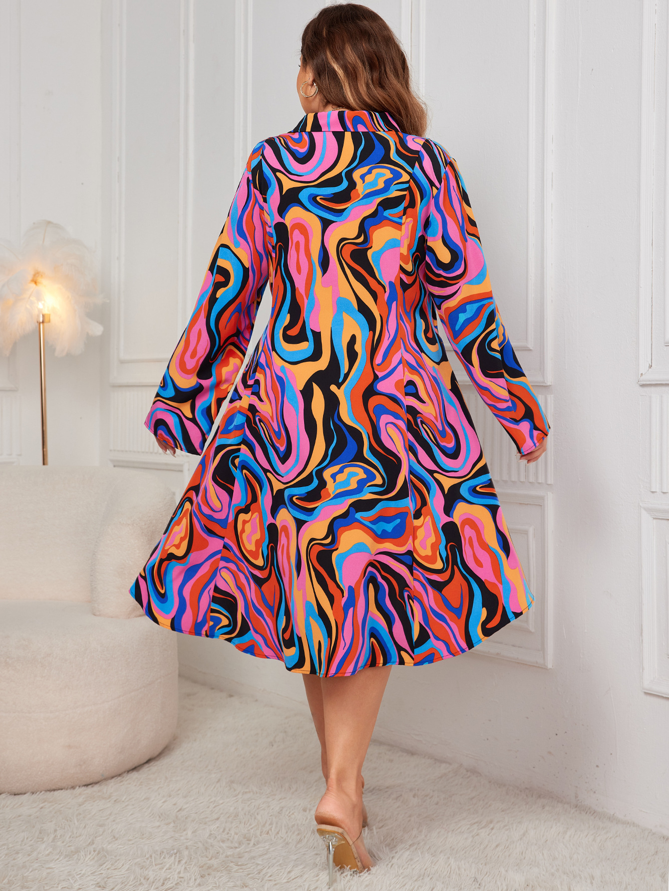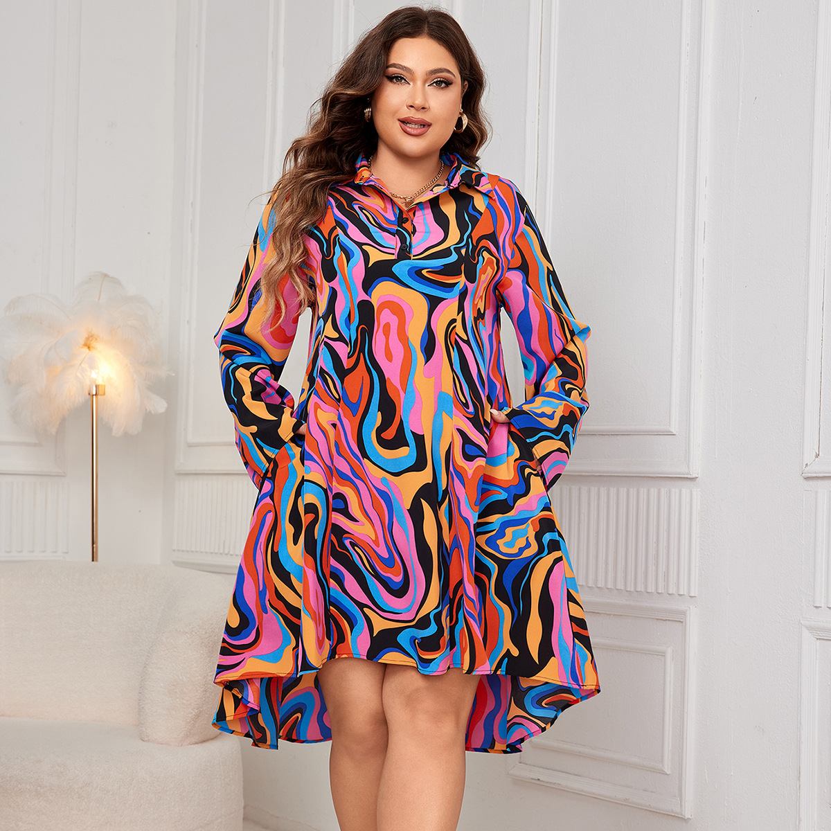 Plus Size Polo Collar Printing Dress Fluid Printing Dress Loose Maxi Dress Women