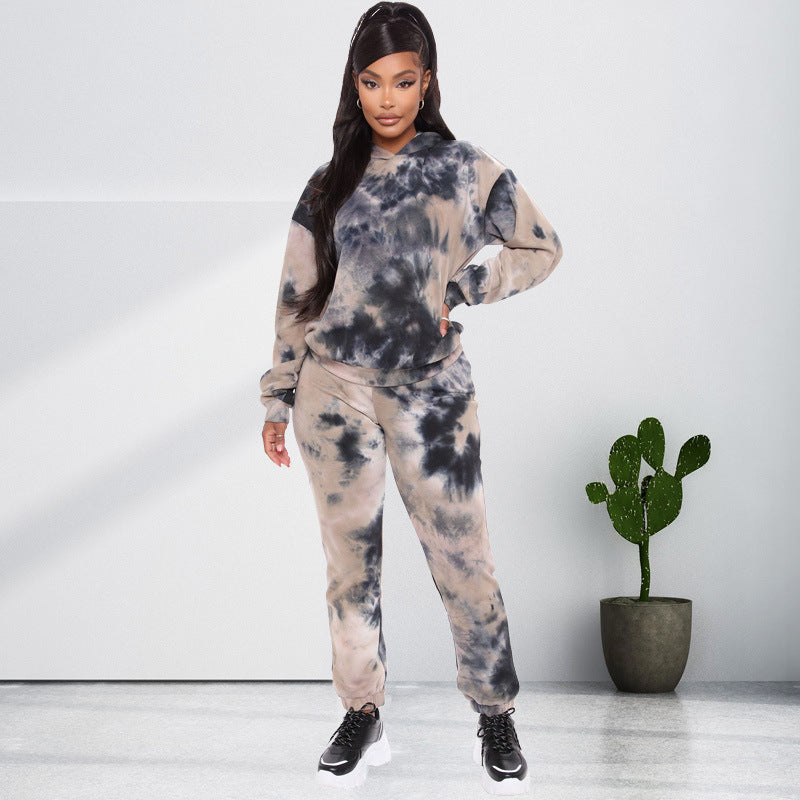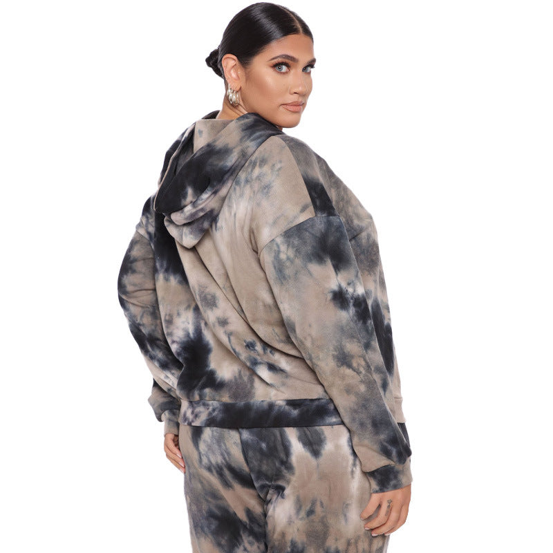 Plus Size Popular Autumn Sping Tie-Dyed Loose Hooded Sweater Casual Set