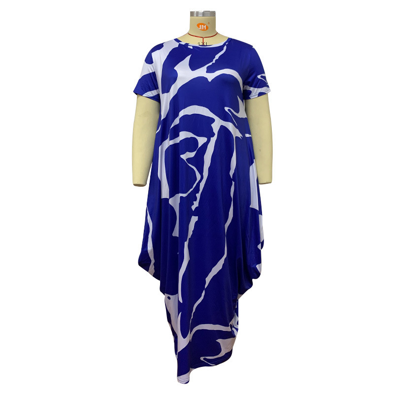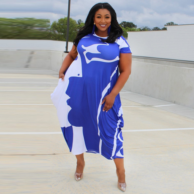 Plus Size Popular Spring Printed round Neck Long Creative Dress