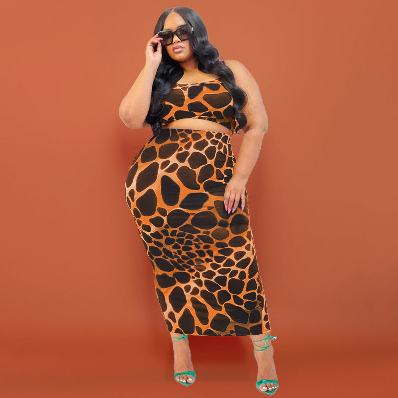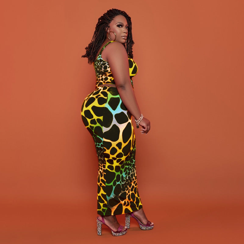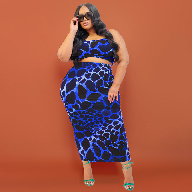 Plus Size Printing Skinny Sheath Casual Set Women Two-Piece Suit