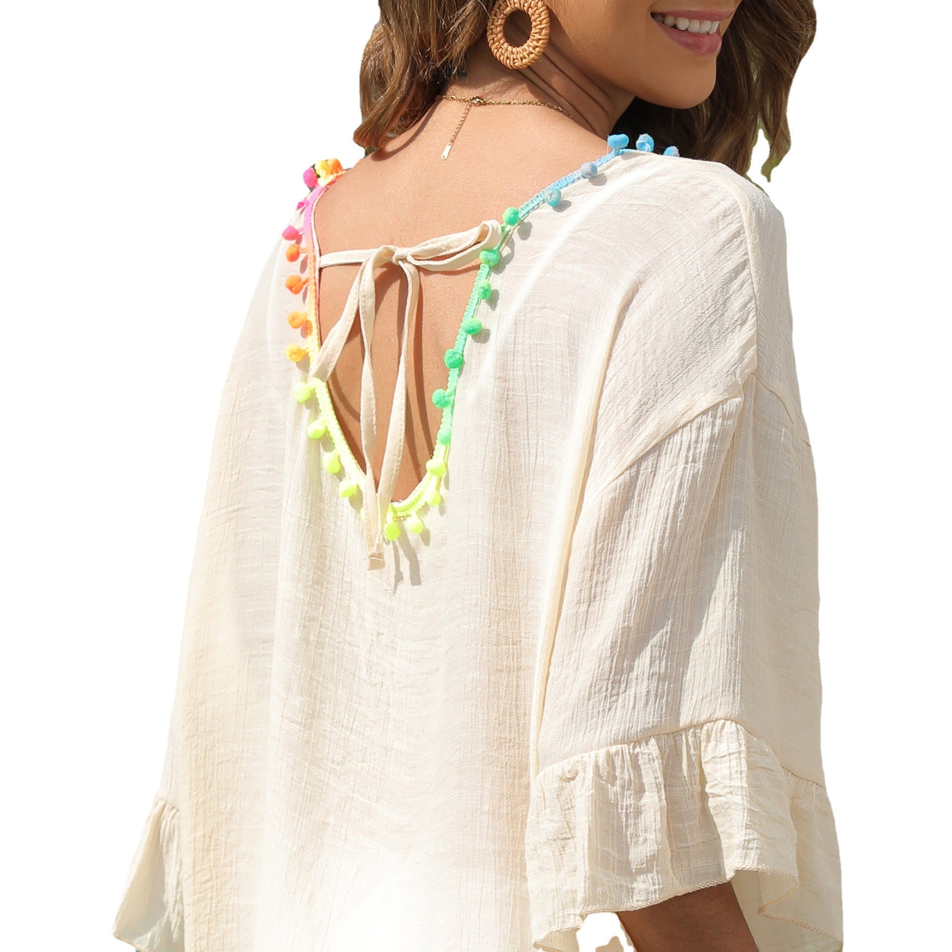 Plus Size Seaside Holiday Blouse Outer Wear Multicolored Tassel Stitching Loose Beach Dress