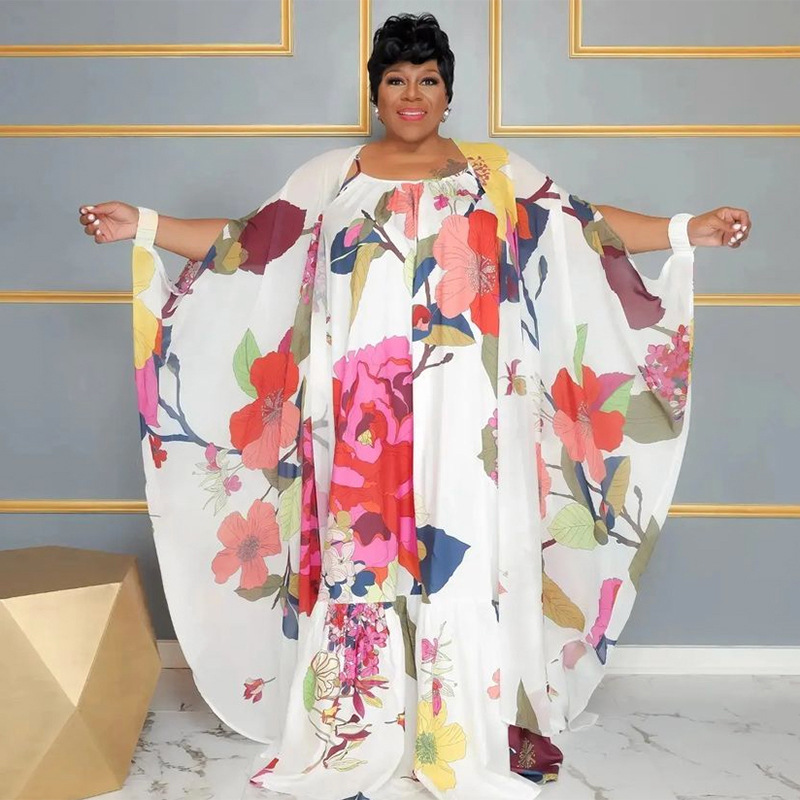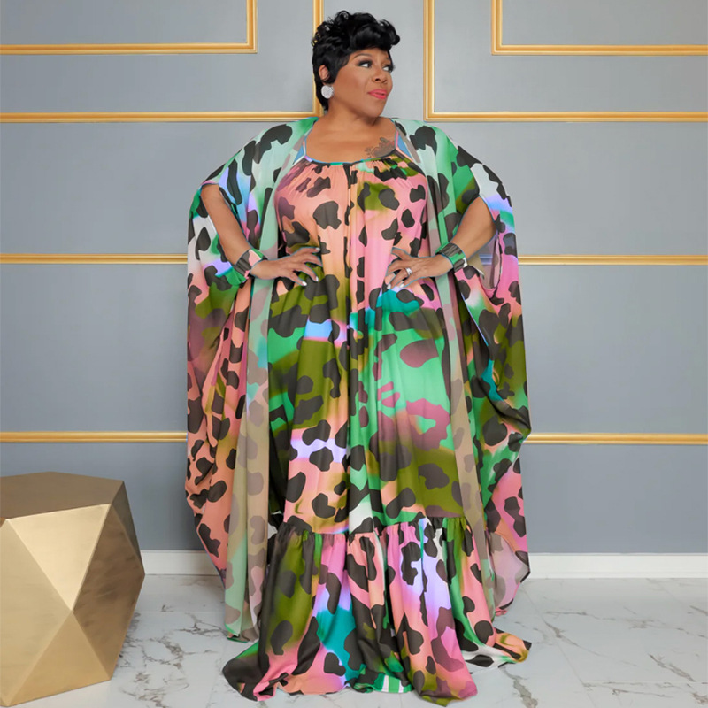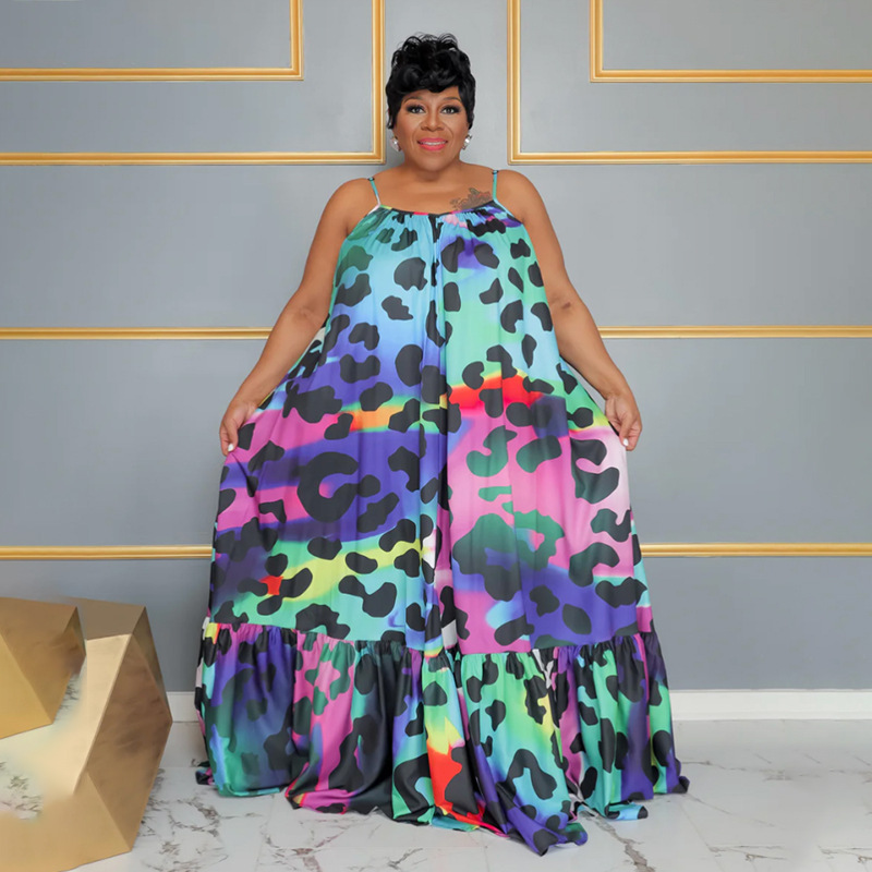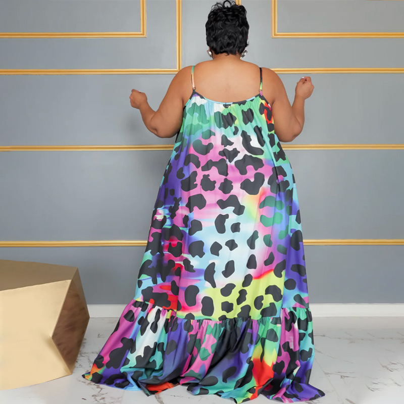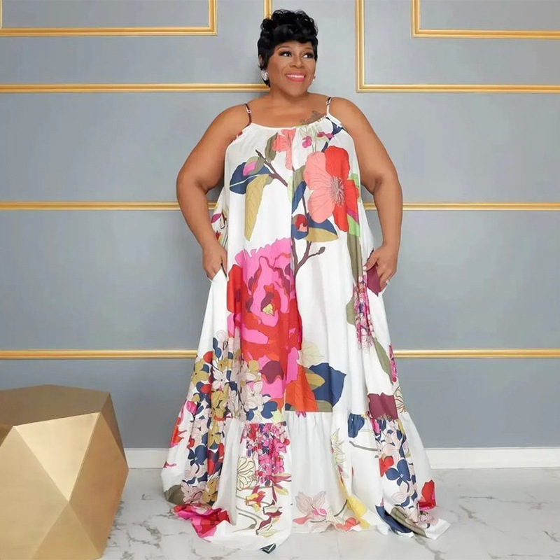 Plus Size Sexy Off The Shoulder Pleated Long Women Clothes Printing Slip Dress