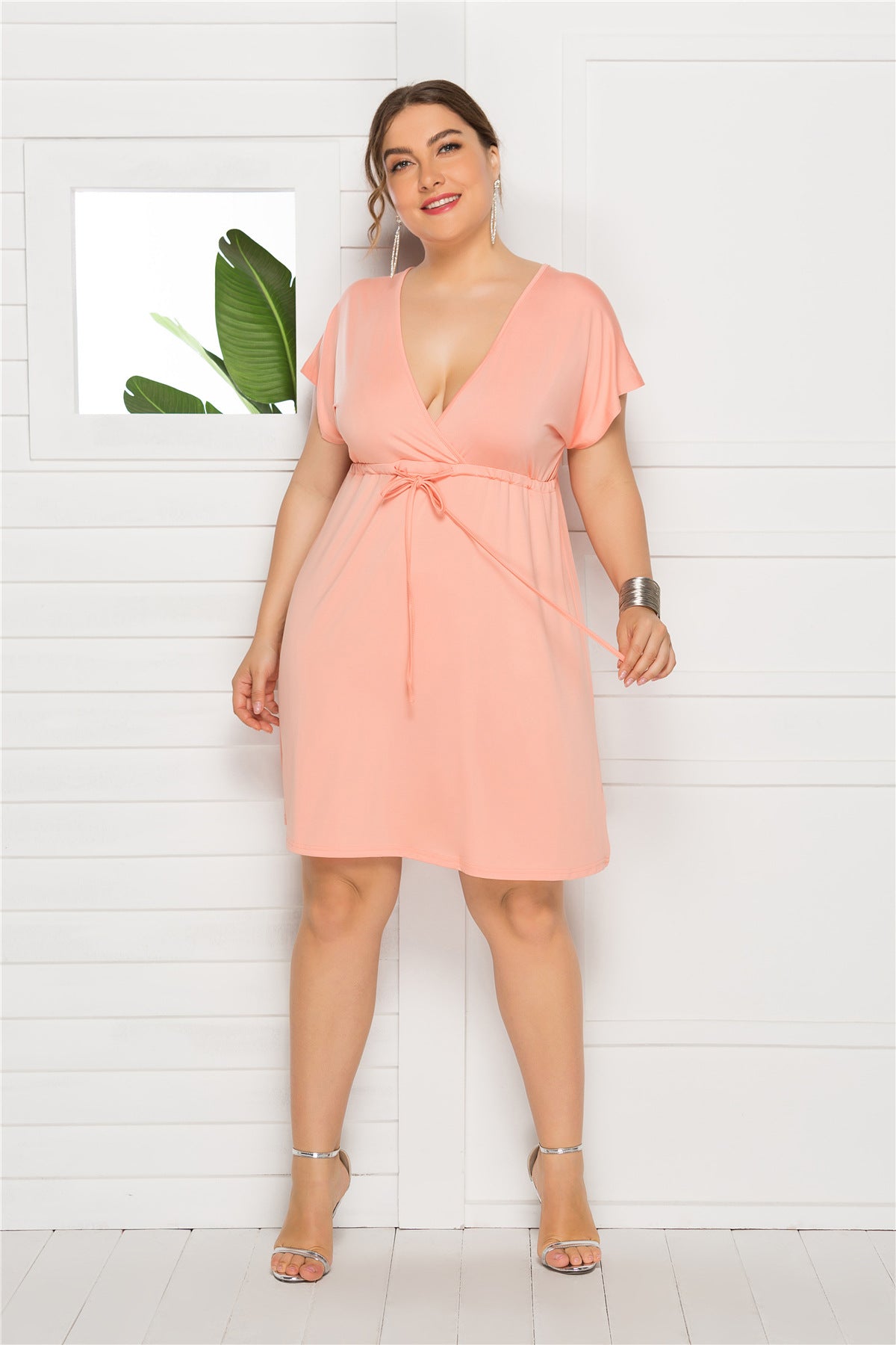 Plus Size Sexy Solid Color Sleeveless Deep V Plunge neck Elastic Waist Dress Women Dressing Gown