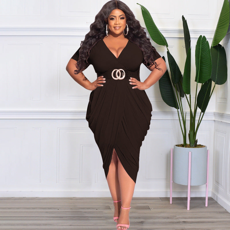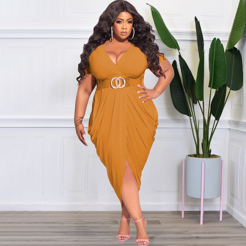 Plus Size Solid Color Deep V Plunge Plunge Sexy Tight Split Long Women Dress