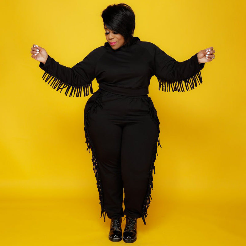 Plus Size Solid Color Loose-Fitting Tassel Street Women Suit