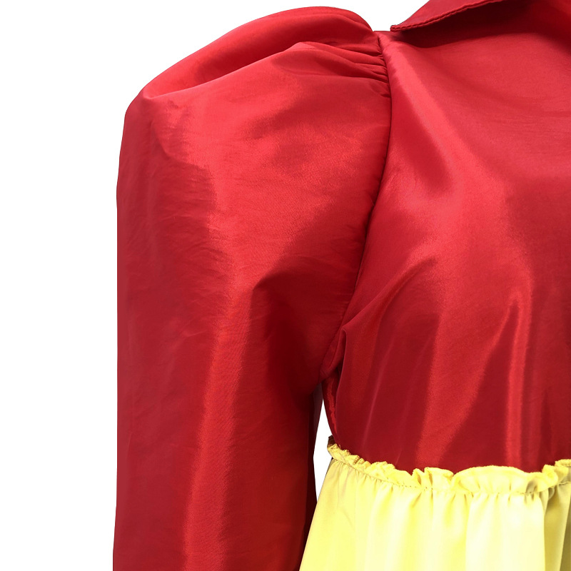 Plus Size Stitching Contrast Color Puff Sleeve Large Swing Women Clothing Dress