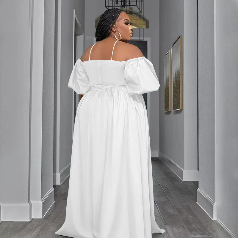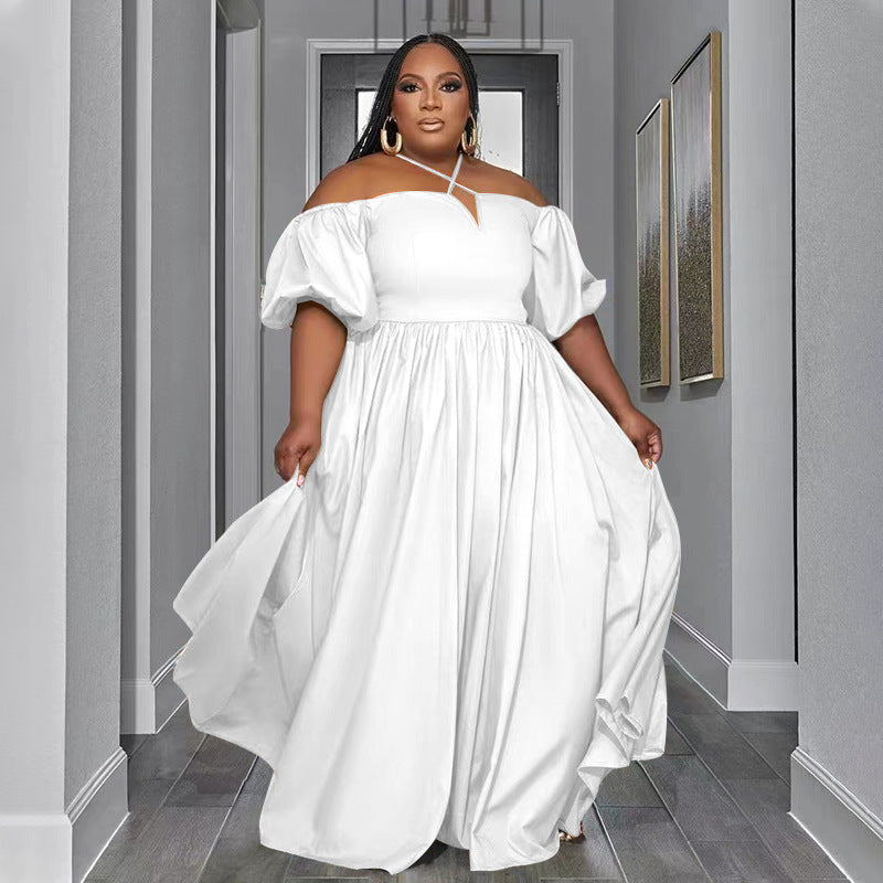 Plus Size Summer Autumn Collection Solid Color Sexy Strapless Halterneck Women Stylish Loose Short Sleeve Dress