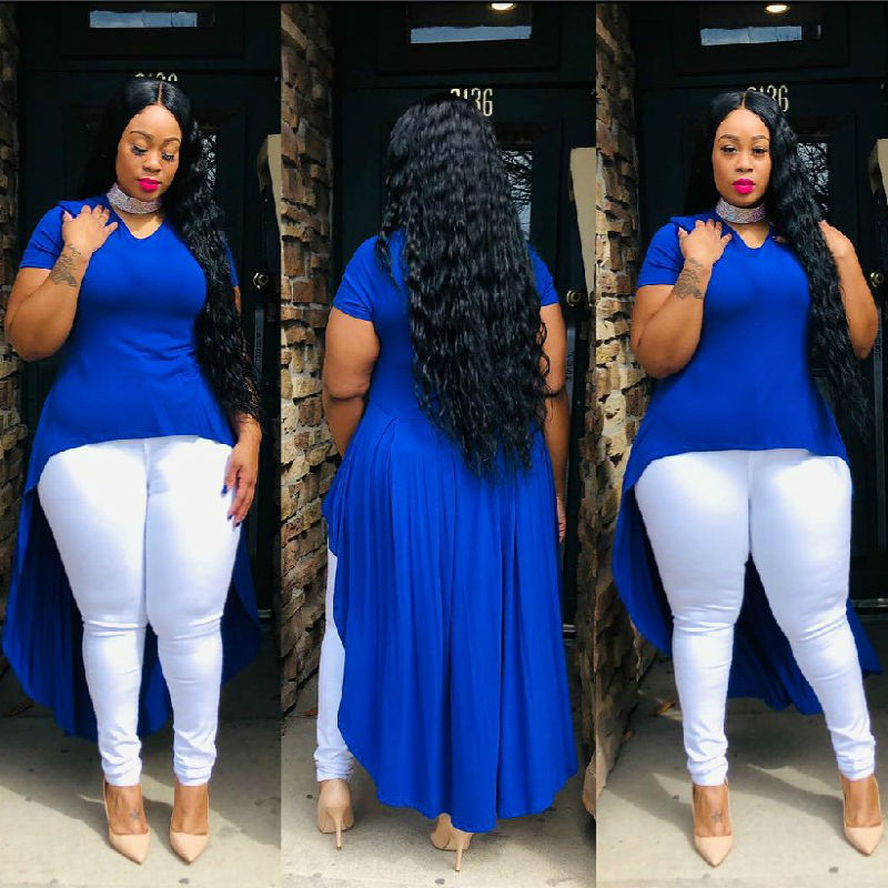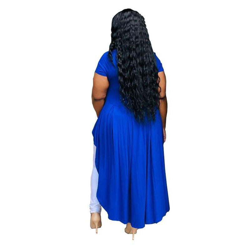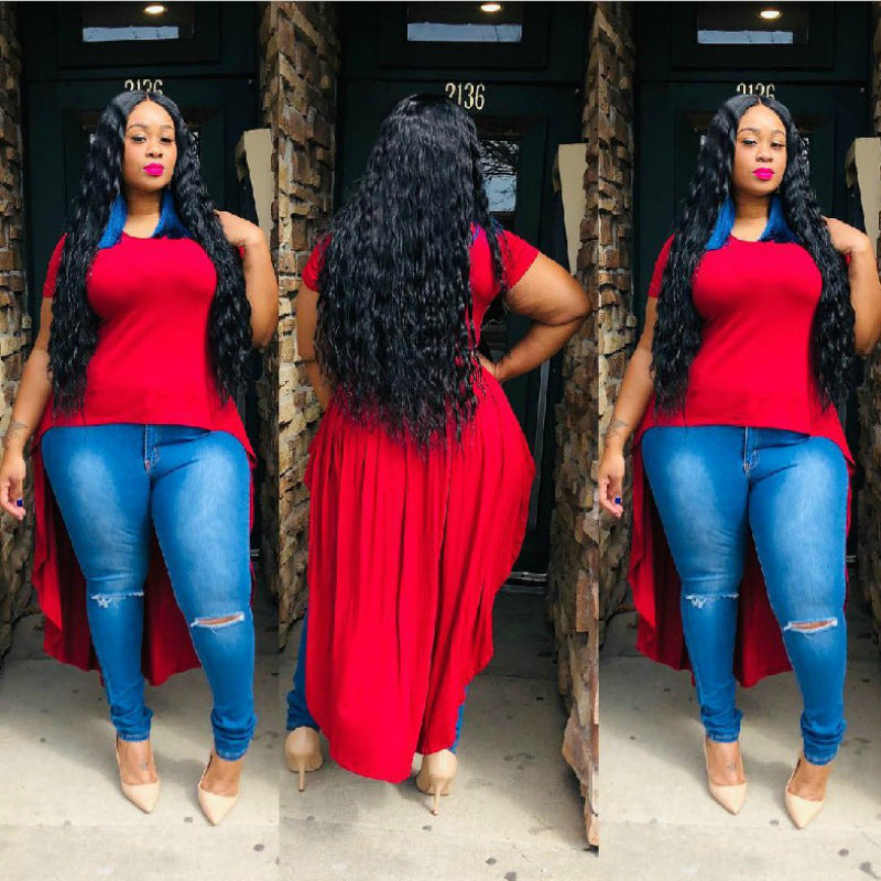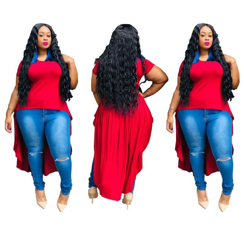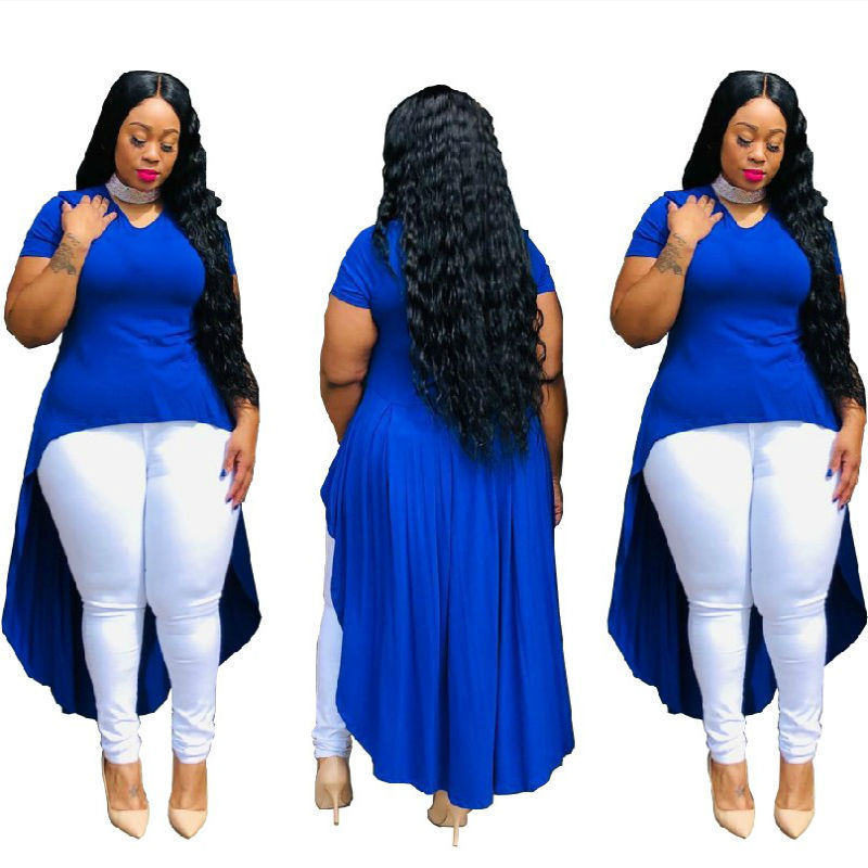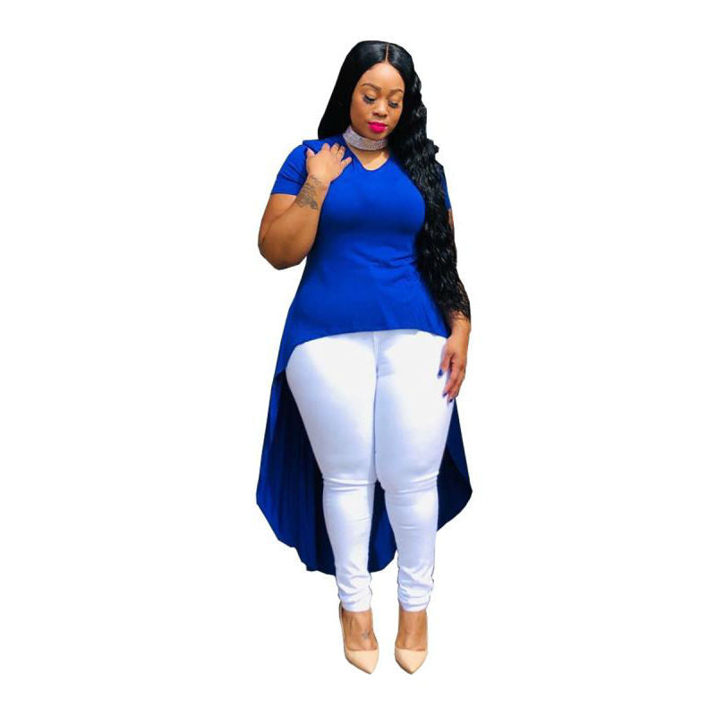 Plus Size Summer Sexy Women Clothes Solid Color Irregular Asymmetric Hem T-shirt