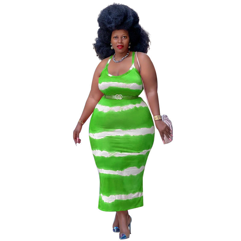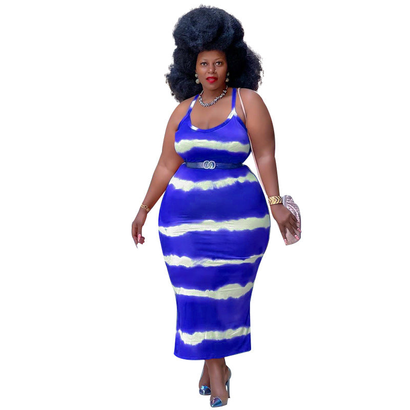 plus Size Summer Women Clothes Sexy Sleeveless Wide Striped Printed Vest Loose Dress