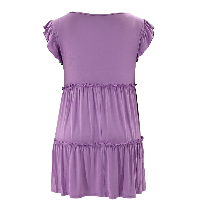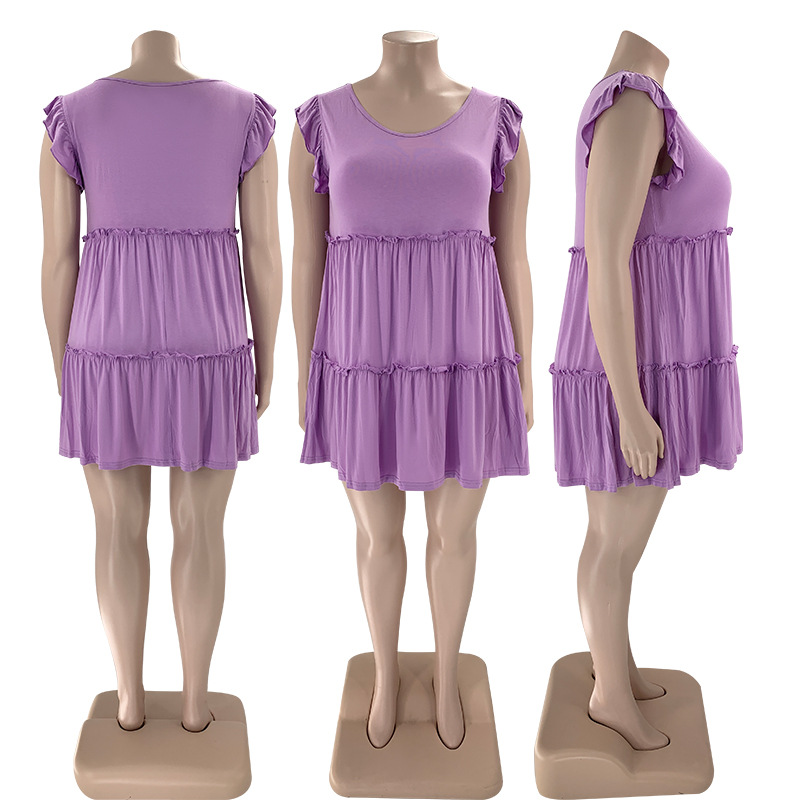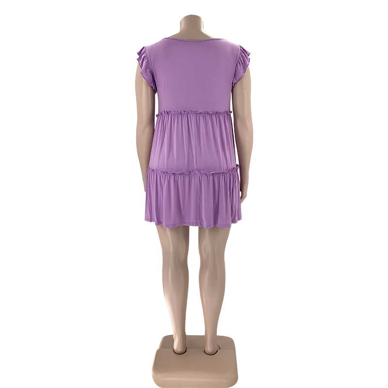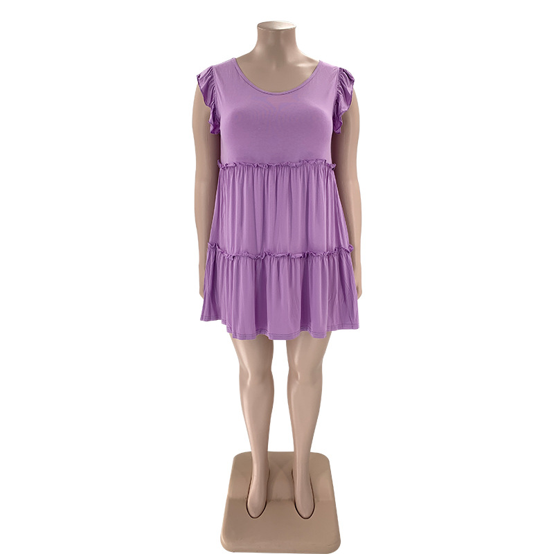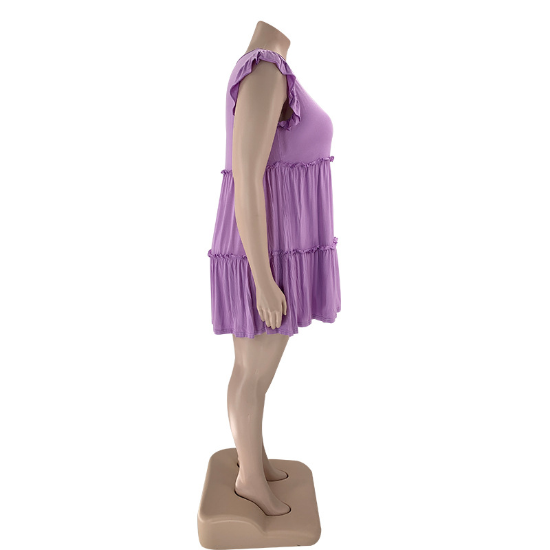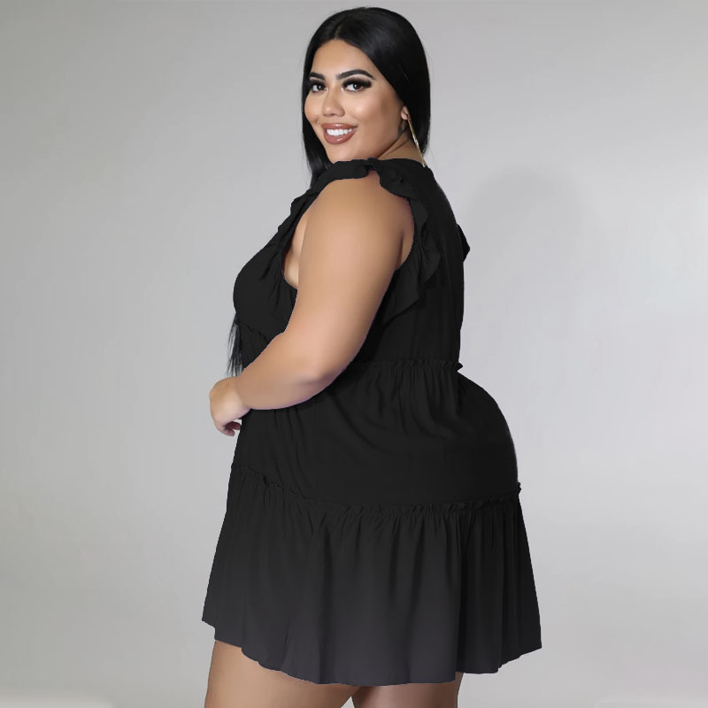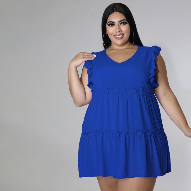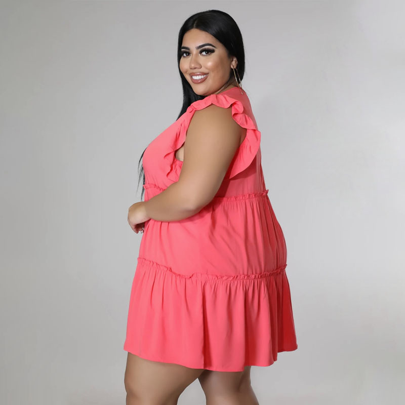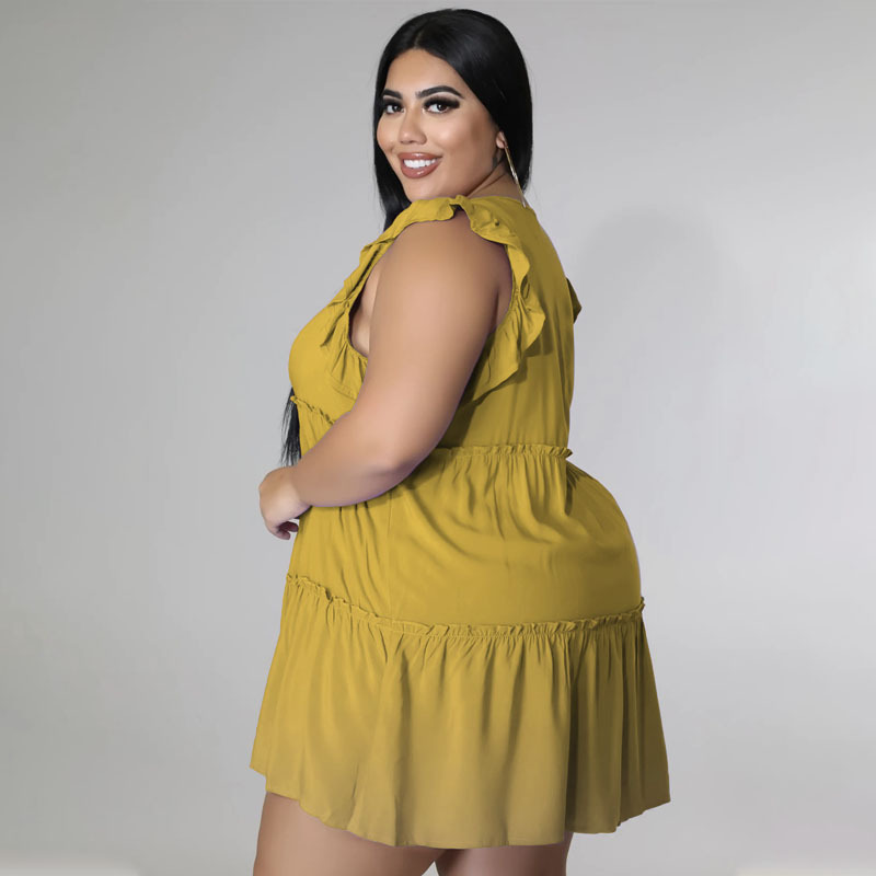 plus Size Summer Women Clothes Solid Color Casual V neck Sleeveless Ruffled Pleated Short Dress