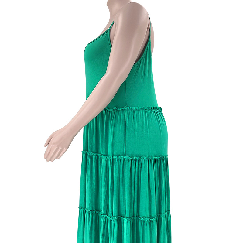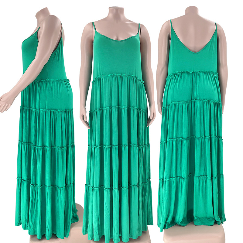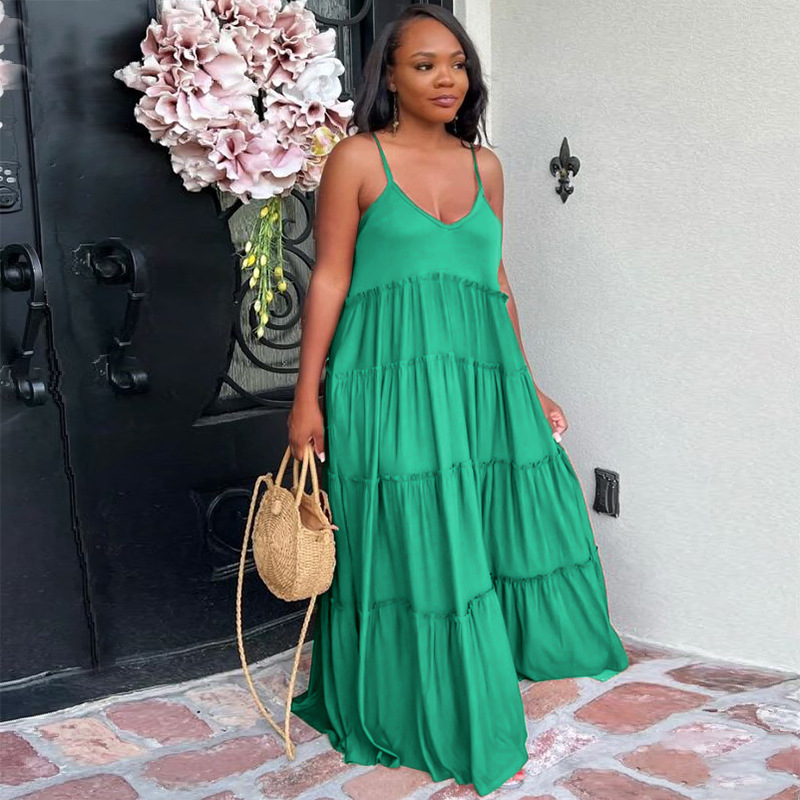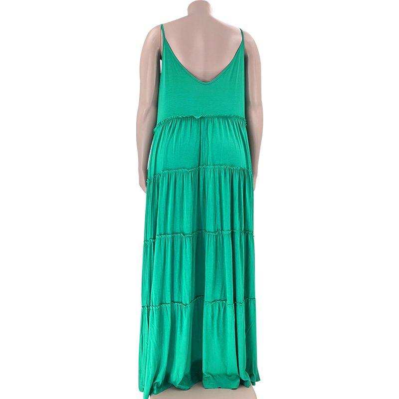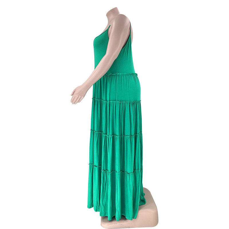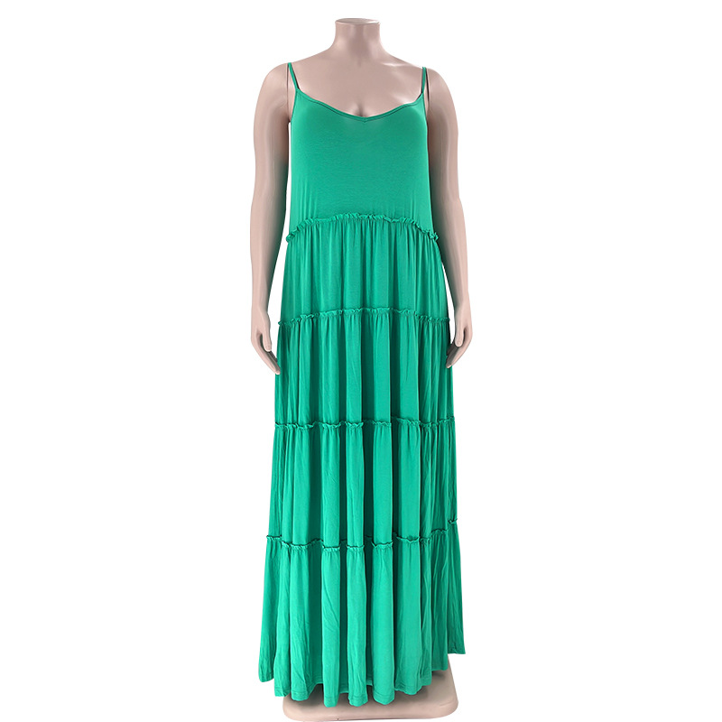 plus Size Summer Women Clothes Solid Color Sexy Strap Pleated Stitching Casual Dress