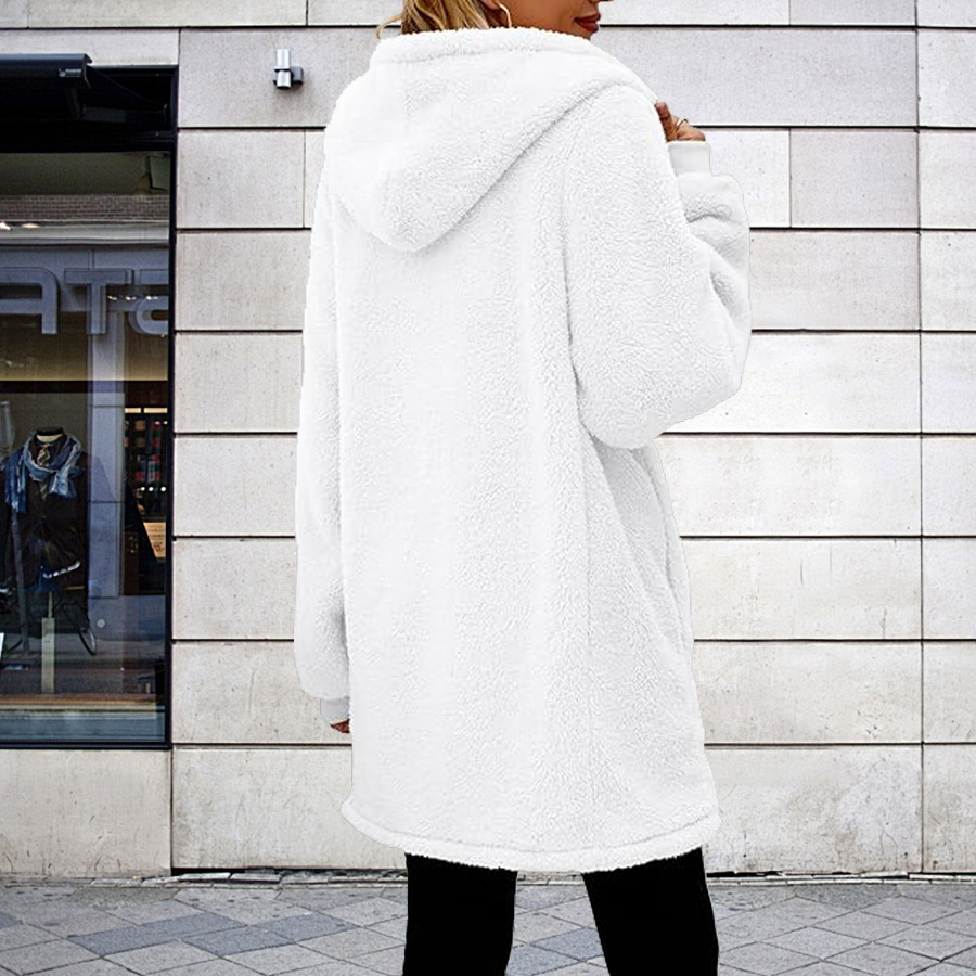 Plus Size Winter Loose Plush Women Long Sleeved Hooded Zipper Jacket